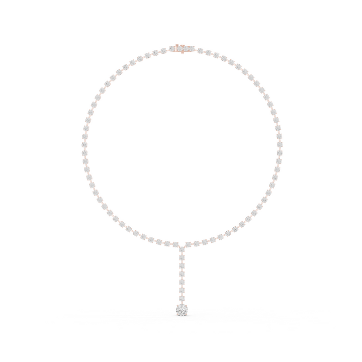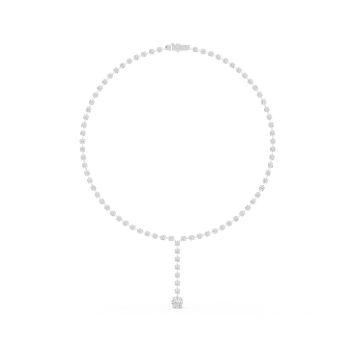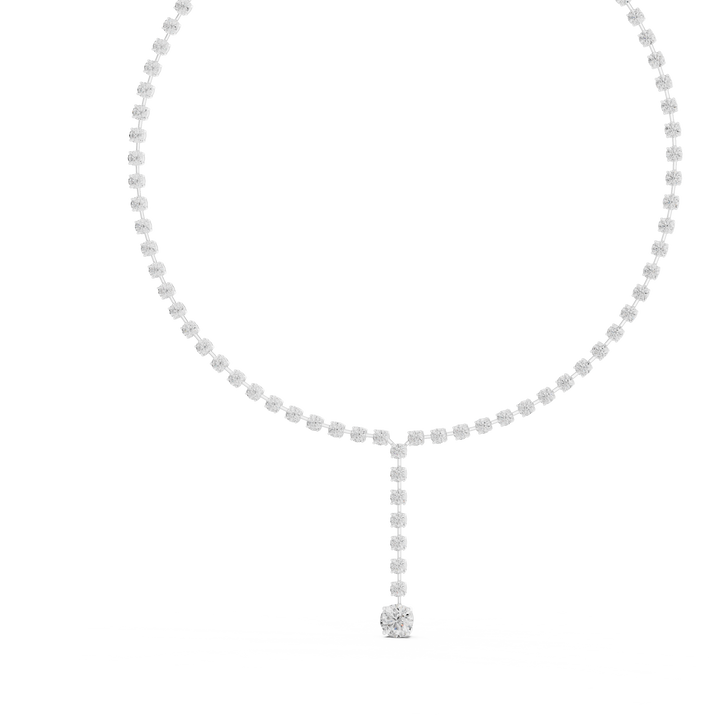This tennis necklace is crafted from 10K white gold and features a 13.44 Ct round lab-grown and natural diamond set in solid 10K gold. Customize any piece in 10K, 14K, or 18K yellow, rose, or white gold, with your choice of lab-grown or natural diamonds where applicable.