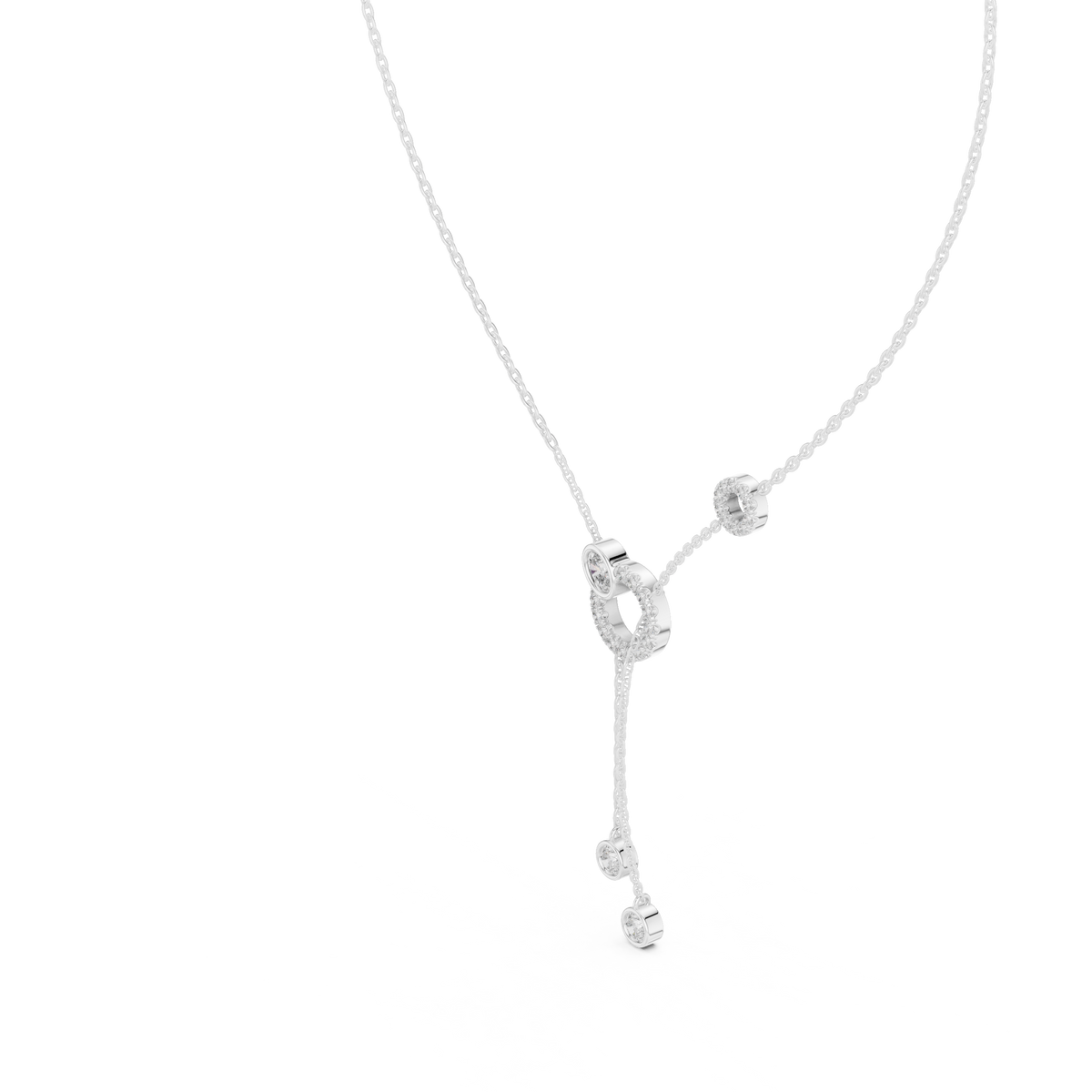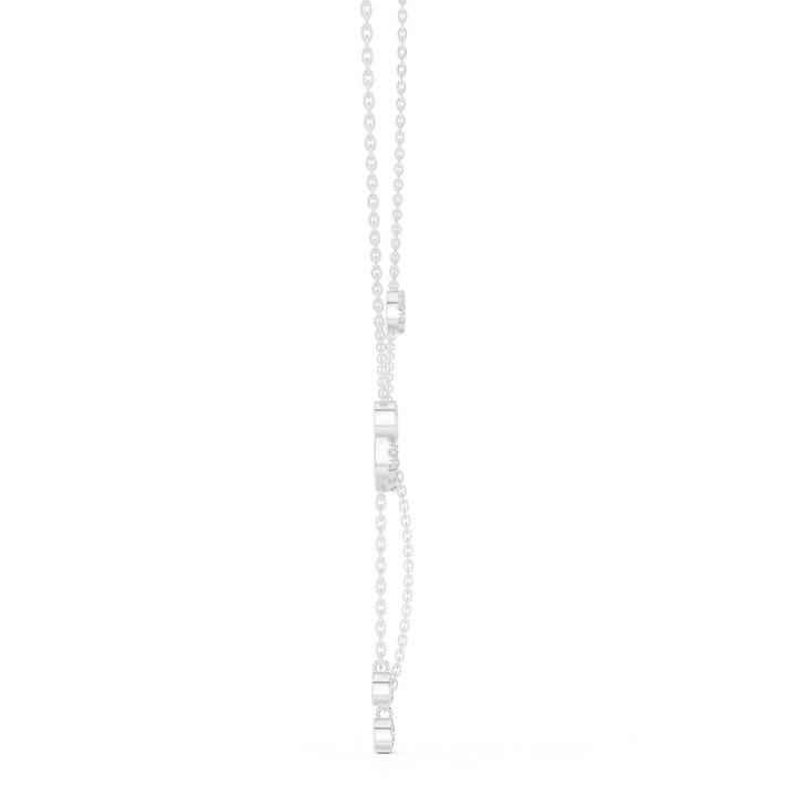 This Lab-grown Diamond Necklace by High Carat is a graduating-style diamond necklace featuring a mix of round and oval lab-grown and natural diamonds. The delicate yet sparkling design in cool white gold radiates timeless beauty and sophistication. This piece is perfect for adding an elegant touch to party wear or as a thoughtful gift, providing versatile glamour for any special occasion.