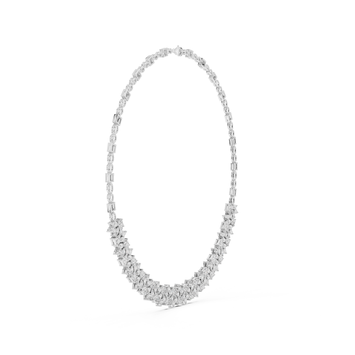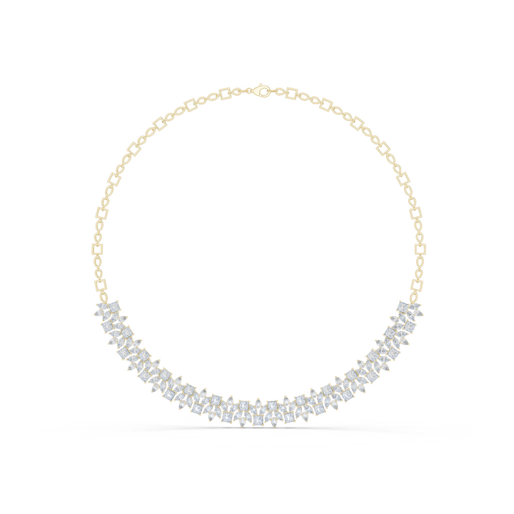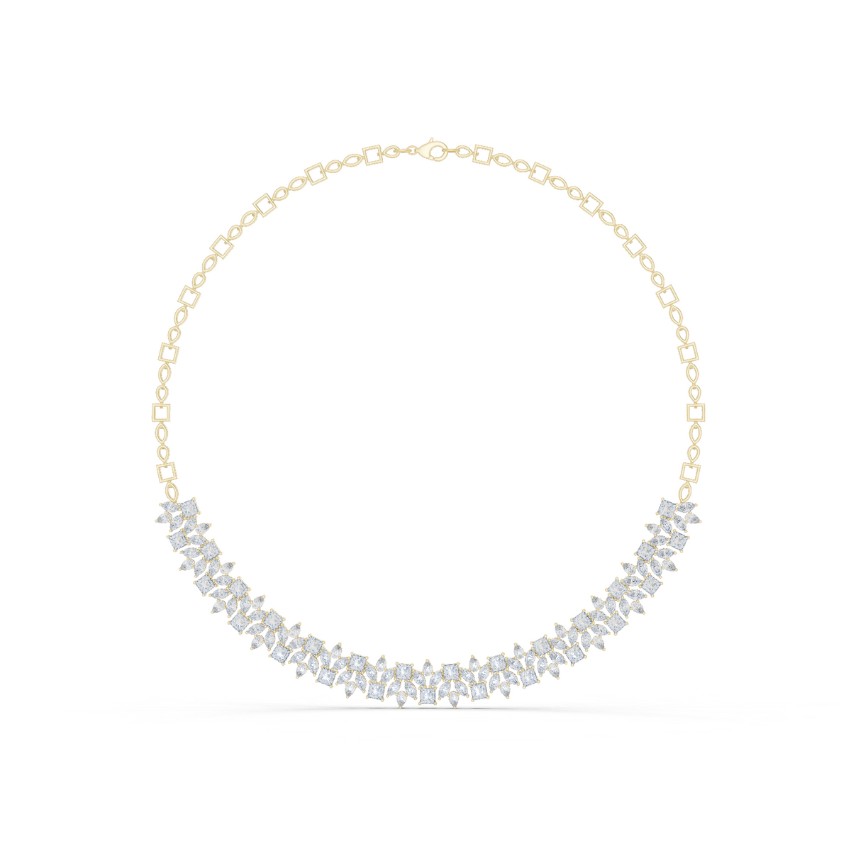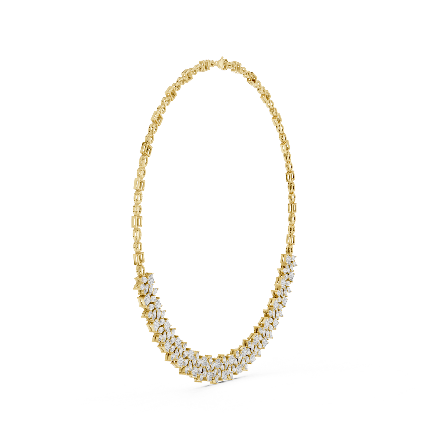 This 2.52Ct Round-Cut Lab-grown Diamond Necklace by High Carat is a breathtaking graduating necklace featuring a stunning array of pear, princess, and marquise cut lab-grown diamonds. The impressive 23.22 Ct total weight in warm yellow gold creates an aesthetic of grand elegance and sophistication. This new classic design is a magnificent, handcrafted gift that will make the wearer shine bright like a diamond on any special day.