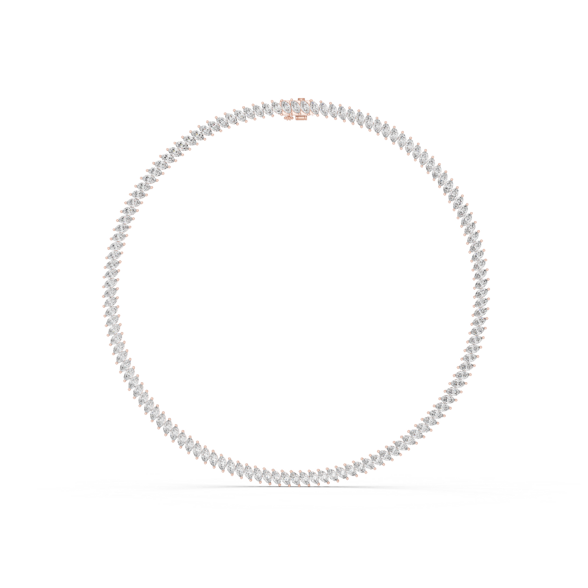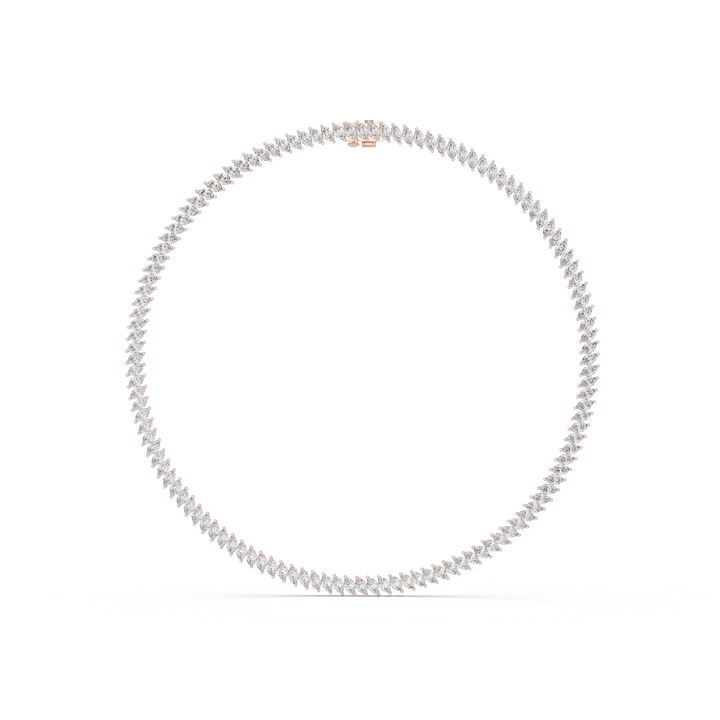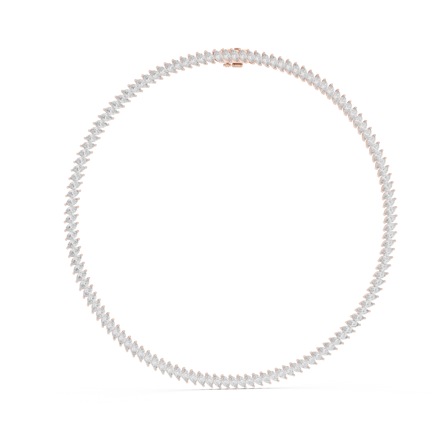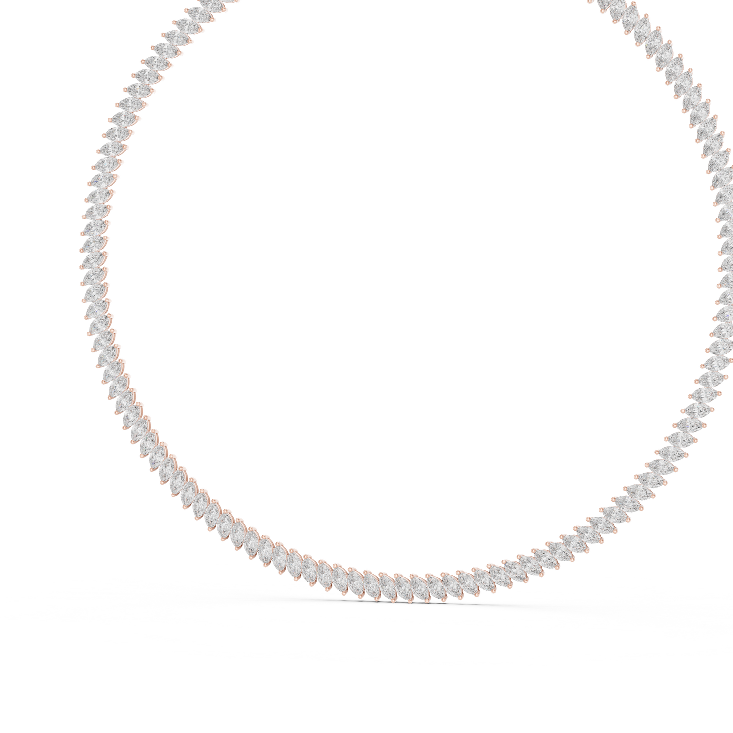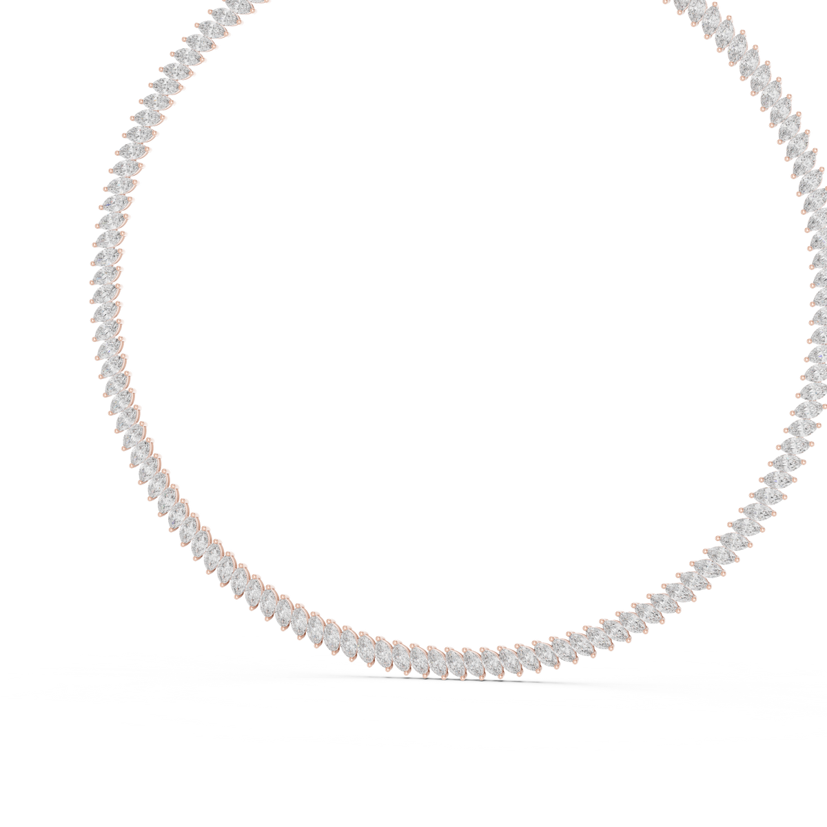 This tennis necklace is crafted from 10K rose gold and features marquise cut lab grown and natural diamonds. Customize any piece in 10K, 14K, or 18K yellow, rose, or white gold, with your choice of lab-grown or natural diamonds where applicable.