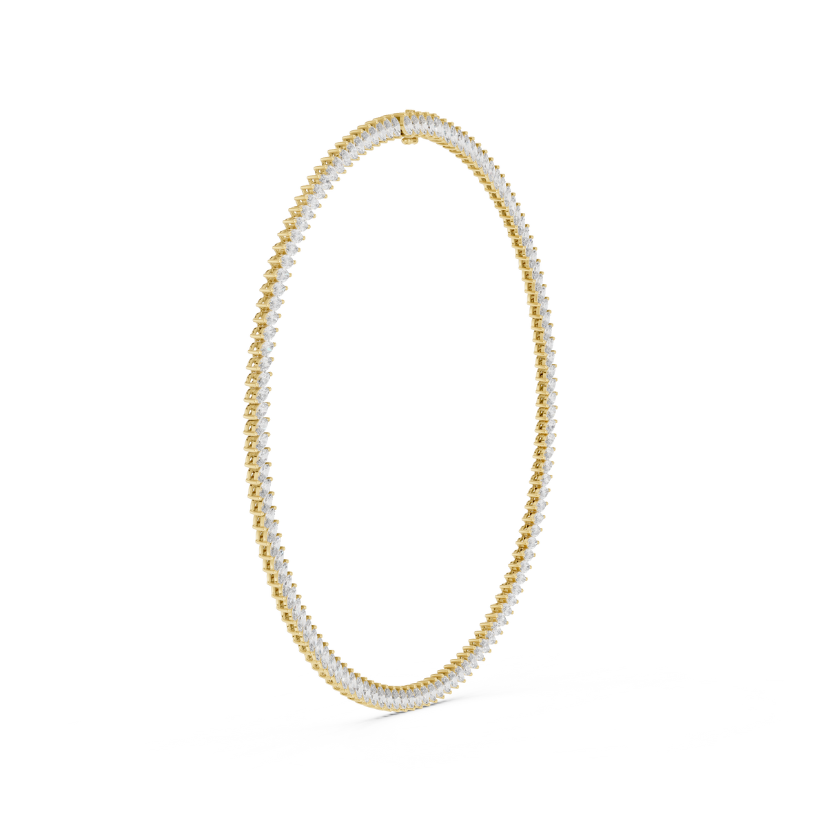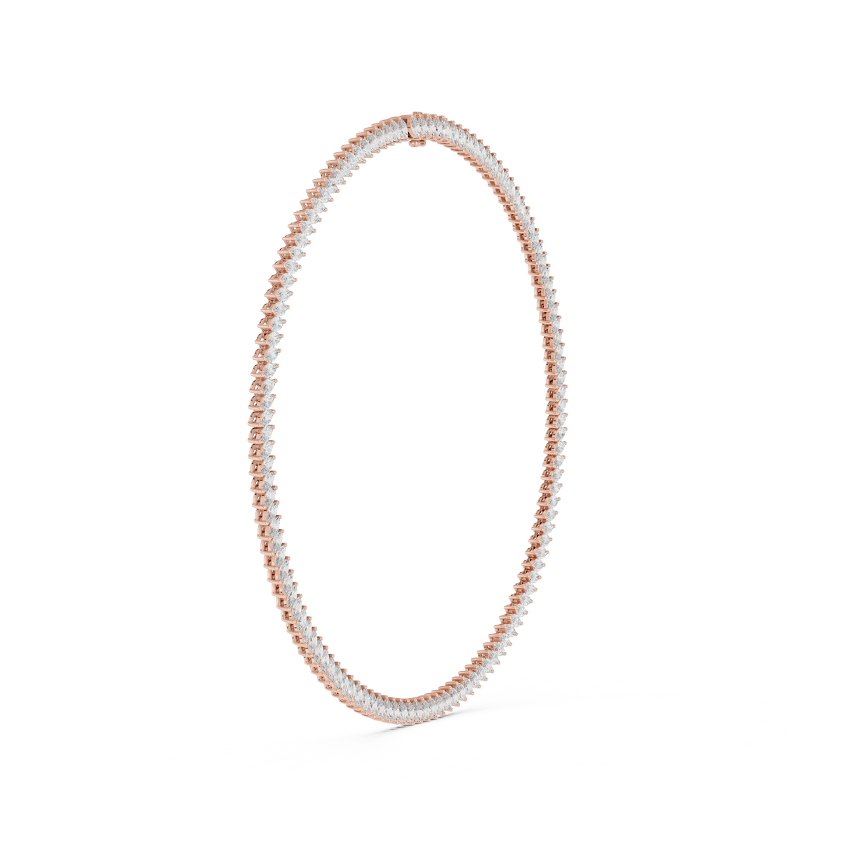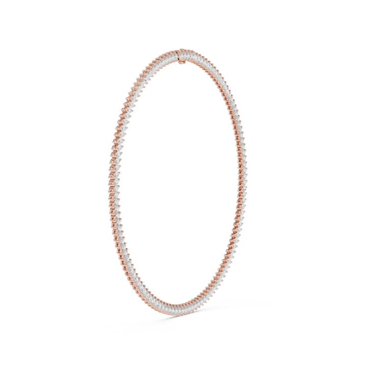 This 3.15Ct Emerald-Cut Lab-grown Diamond Necklace by High Carat is a stunning tennis necklace featuring a line of marquise-cut lab-grown and natural diamonds. This classic, elegant design in warm rose gold is perfect for both special occasions and everyday wear. It is a timeless accessory that adds a touch of sophistication and sparkle to any outfit, making it an ideal gift for the woman who appreciates fine, classic jewelry.