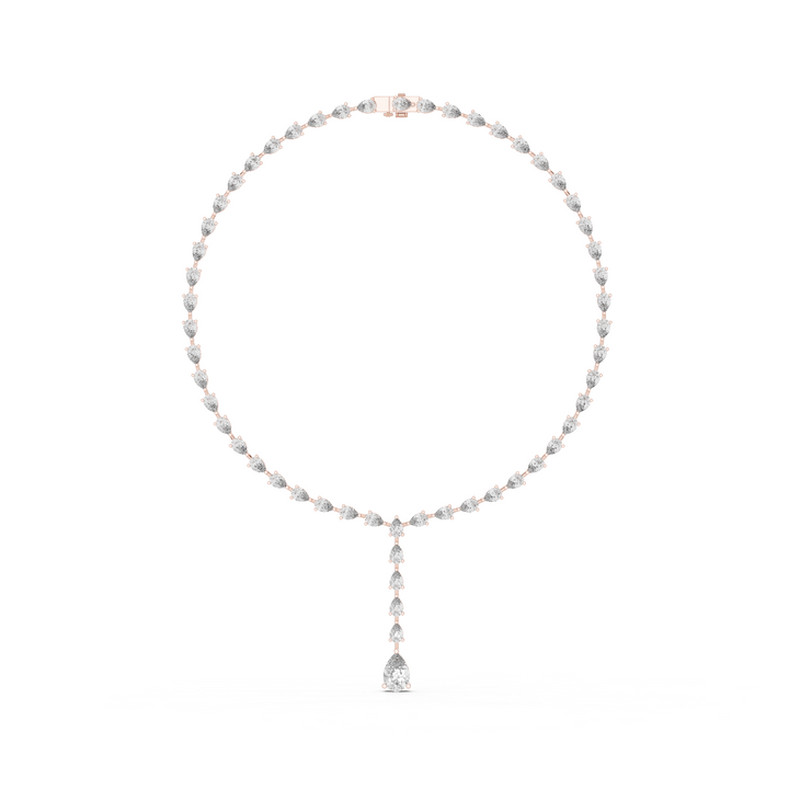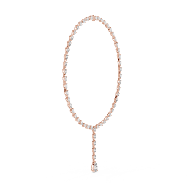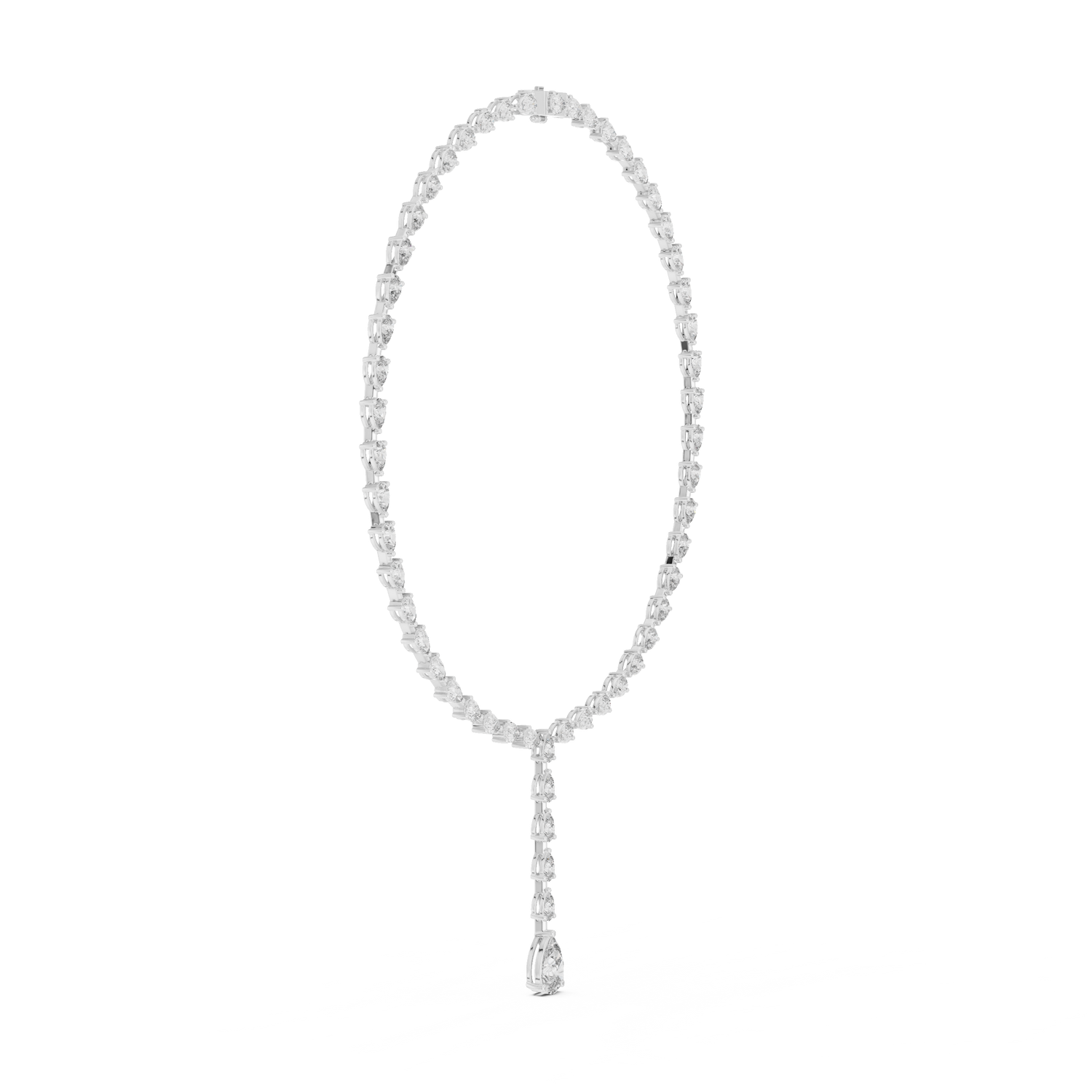 This Round-Cut Lab-grown Diamond Necklace by High Carat is a stunning classic solitaire necklace in a tennis-style chain, featuring pear-shaped lab-grown diamonds. Crafted in cool white gold, this piece offers the perfect harmony of classic style and modern sustainability. This timeless accessory exudes beauty and sophistication, making it a thoughtful gift for the modern woman who values both luxury and ethical elegance.