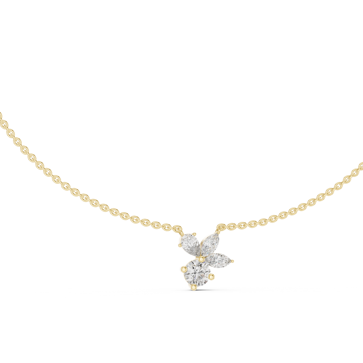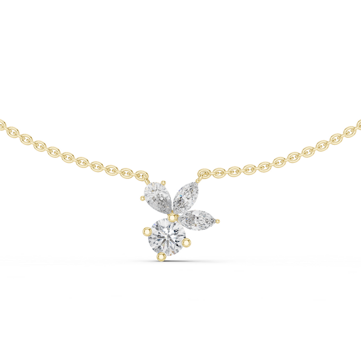 This 14.70Ct Pear-Cut Lab-grown and Natural Diamond Necklace by High Carat is a striking classic solitaire necklace with a vintage feel, featuring a four-stone round shape design. The 2.21 carat total weight in cool white gold adds a touch of intricate elegance to any outfit. This piece is perfect for special occasions, providing a luxurious sparkle that is both unique and classic, ensuring the wearer is ready to shine.