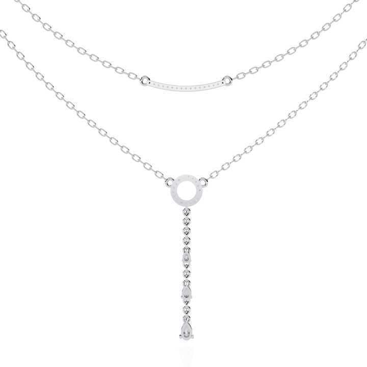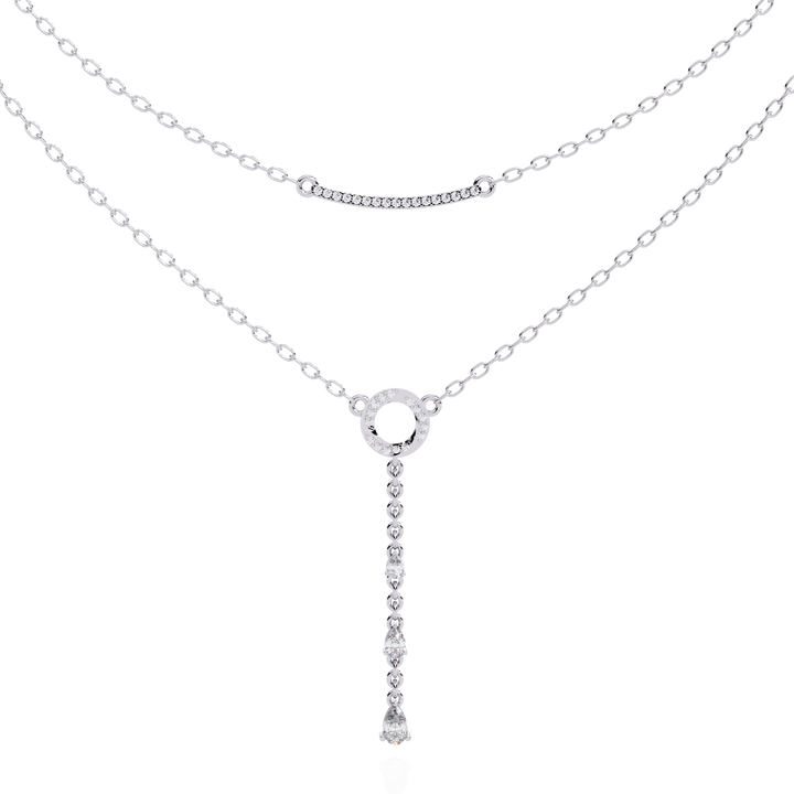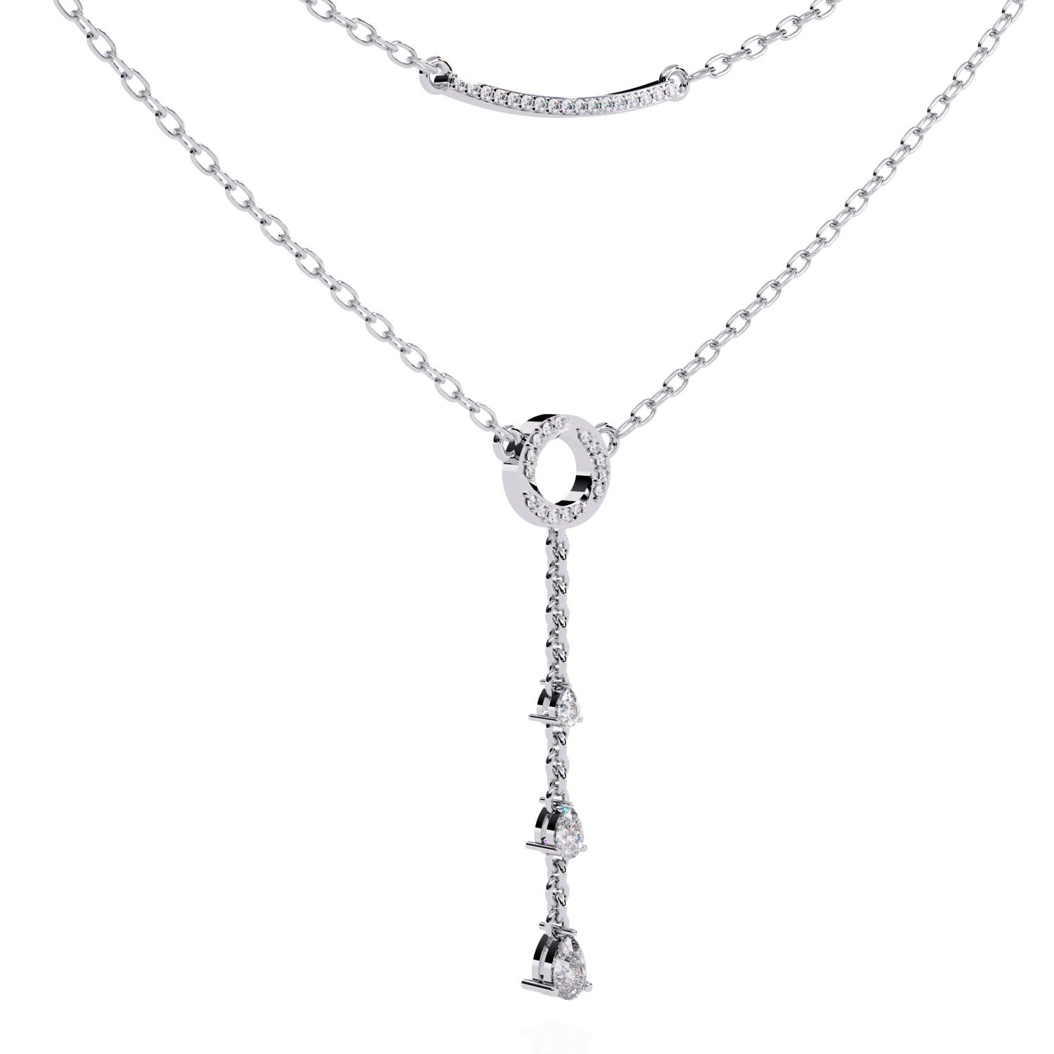 This Pear-Cut Lab-grown Diamond Vintage Multi-layer Necklace by High Carat is an exquisite multi-layer necklace featuring a blend of pear and round-cut lab-grown and natural diamonds in a unique open-circle design. The cool white gold setting exudes vintage charm, making it the perfect statement piece for any party or special occasion. Elevate your style and sparkle with this stunning, timeless necklace.