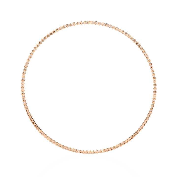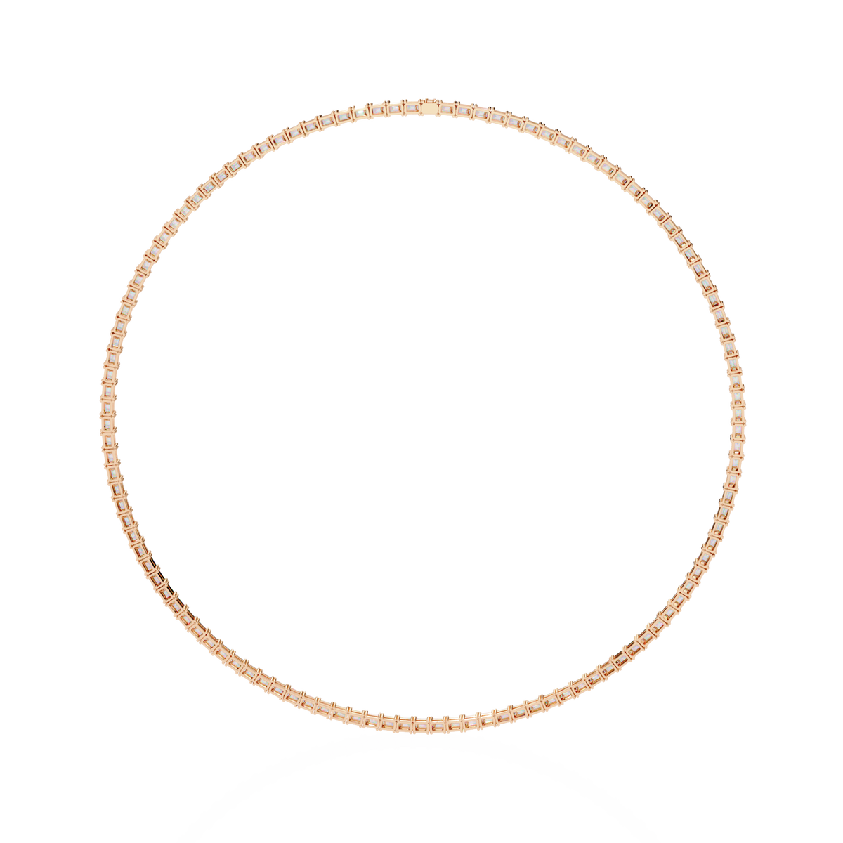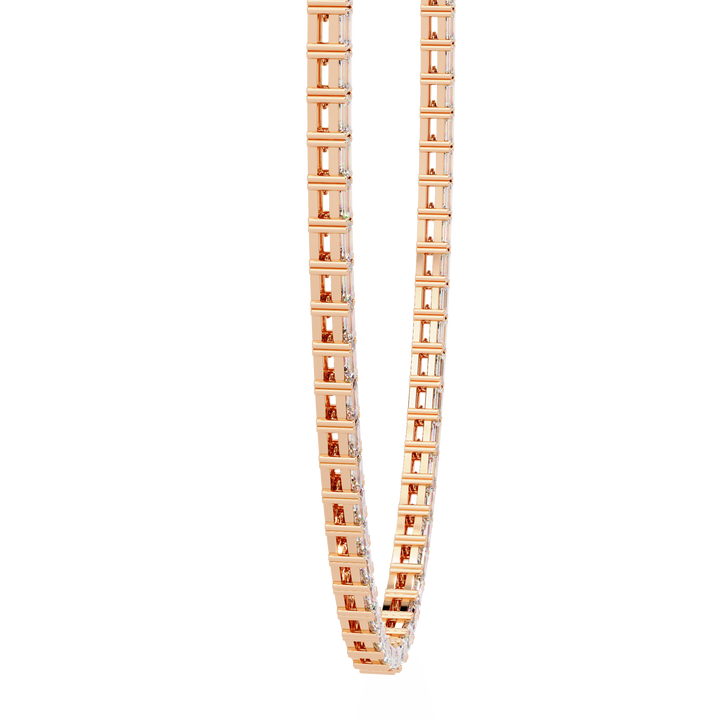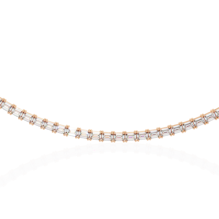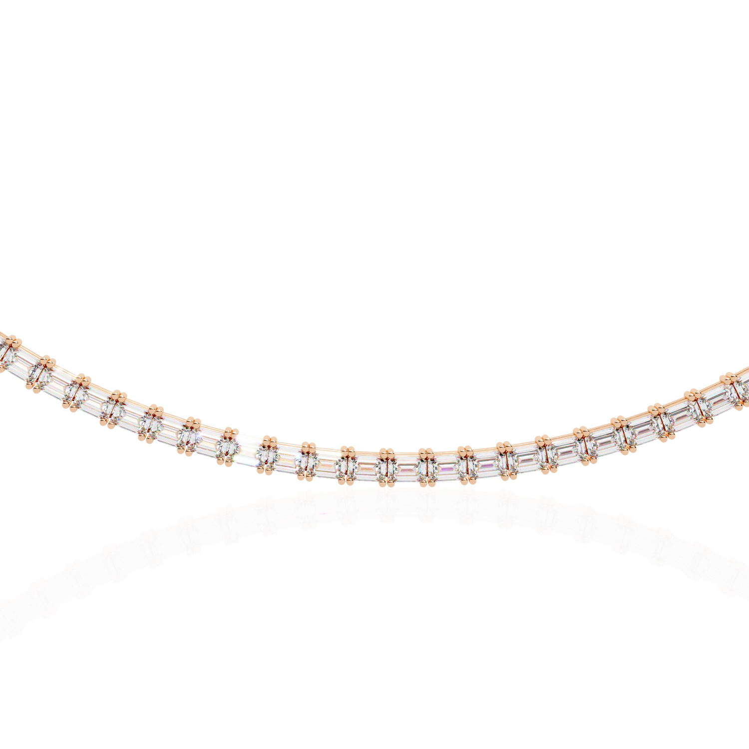 This tennis necklace is crafted from 10K white gold and features an emerald-cut lab-grown diamond set in solid 18K rose gold. Customize any piece in 10K, 14K, or 18K yellow, rose, or white gold, with your choice of lab-grown or natural diamonds where applicable.