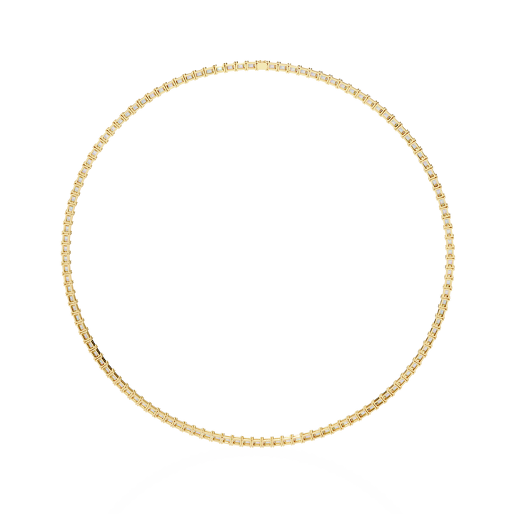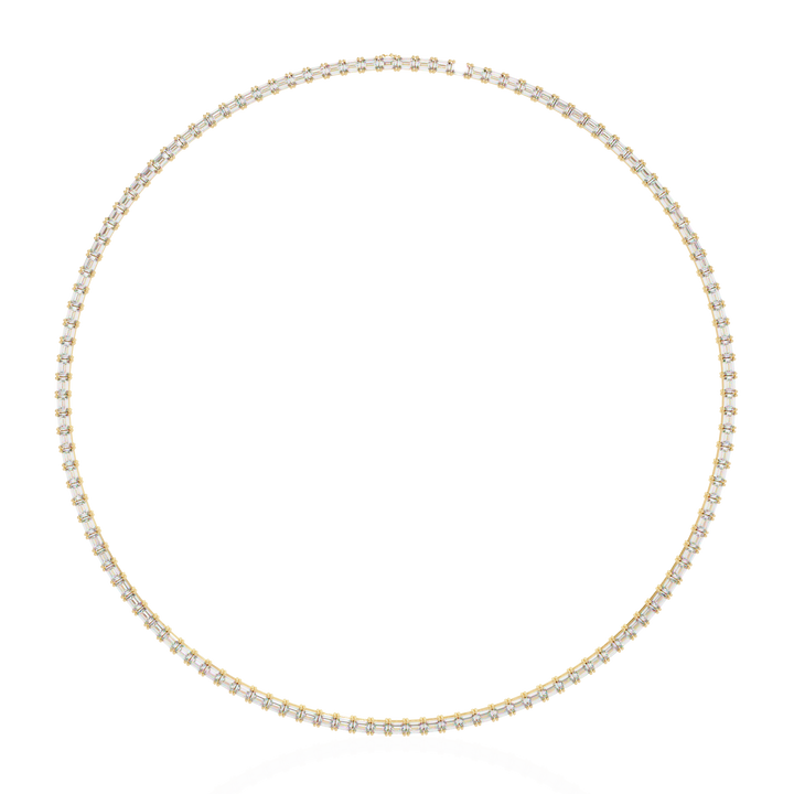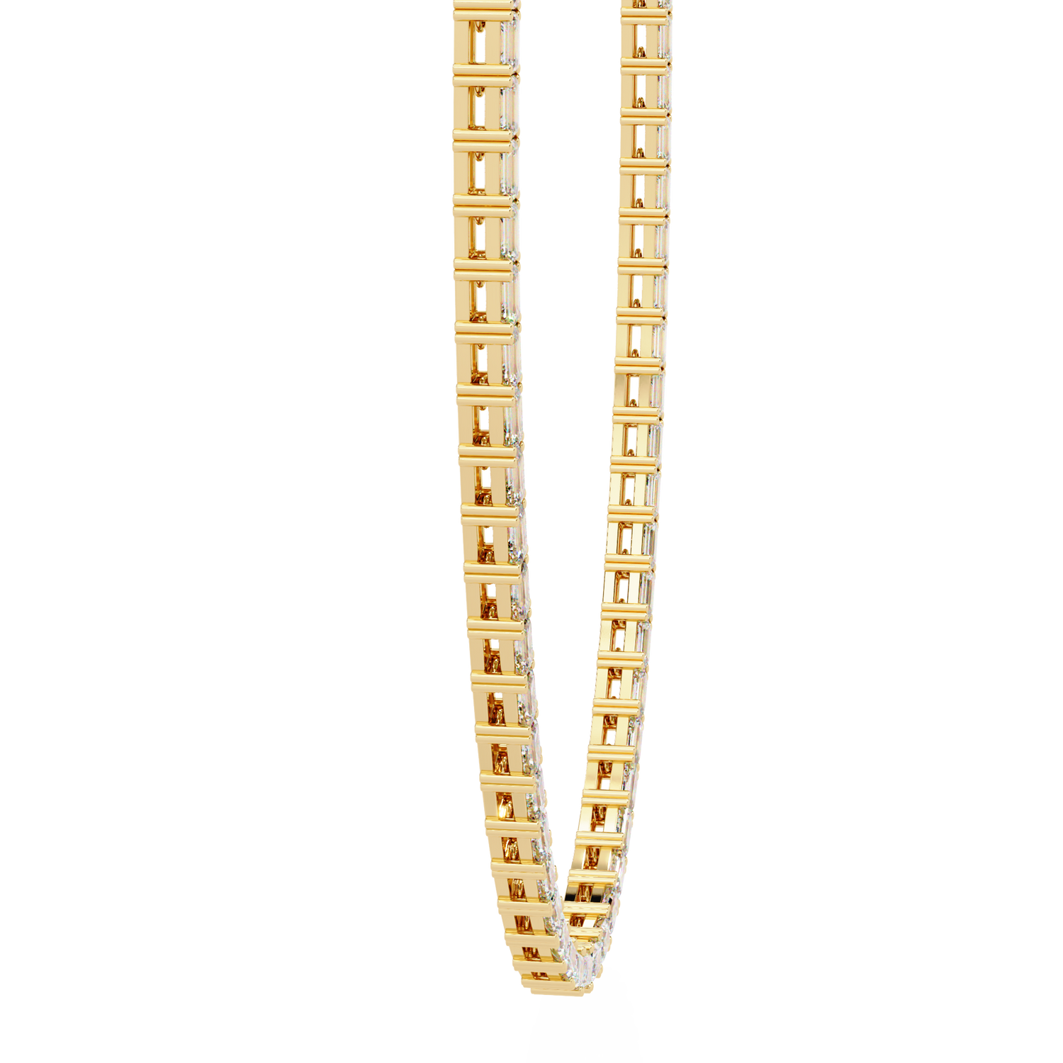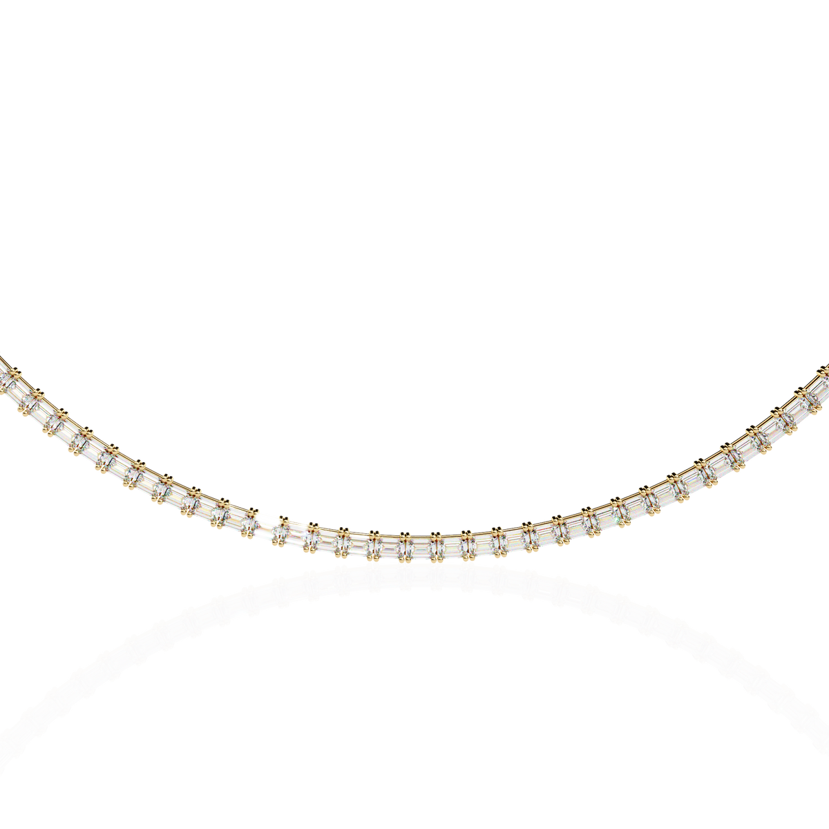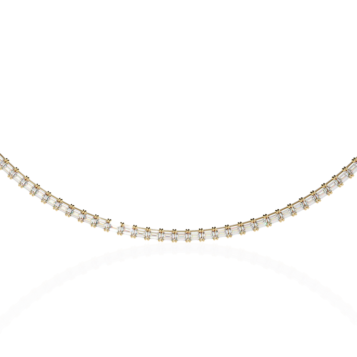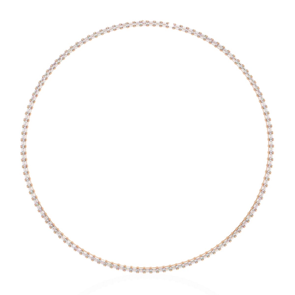 This tennis necklace is crafted from 10K white gold and features an emerald-cut lab-grown diamond set in solid 18K rose gold. Customize any piece in 10K, 14K, or 18K yellow, rose, or white gold, with your choice of lab-grown or natural diamonds where applicable.
