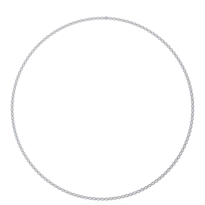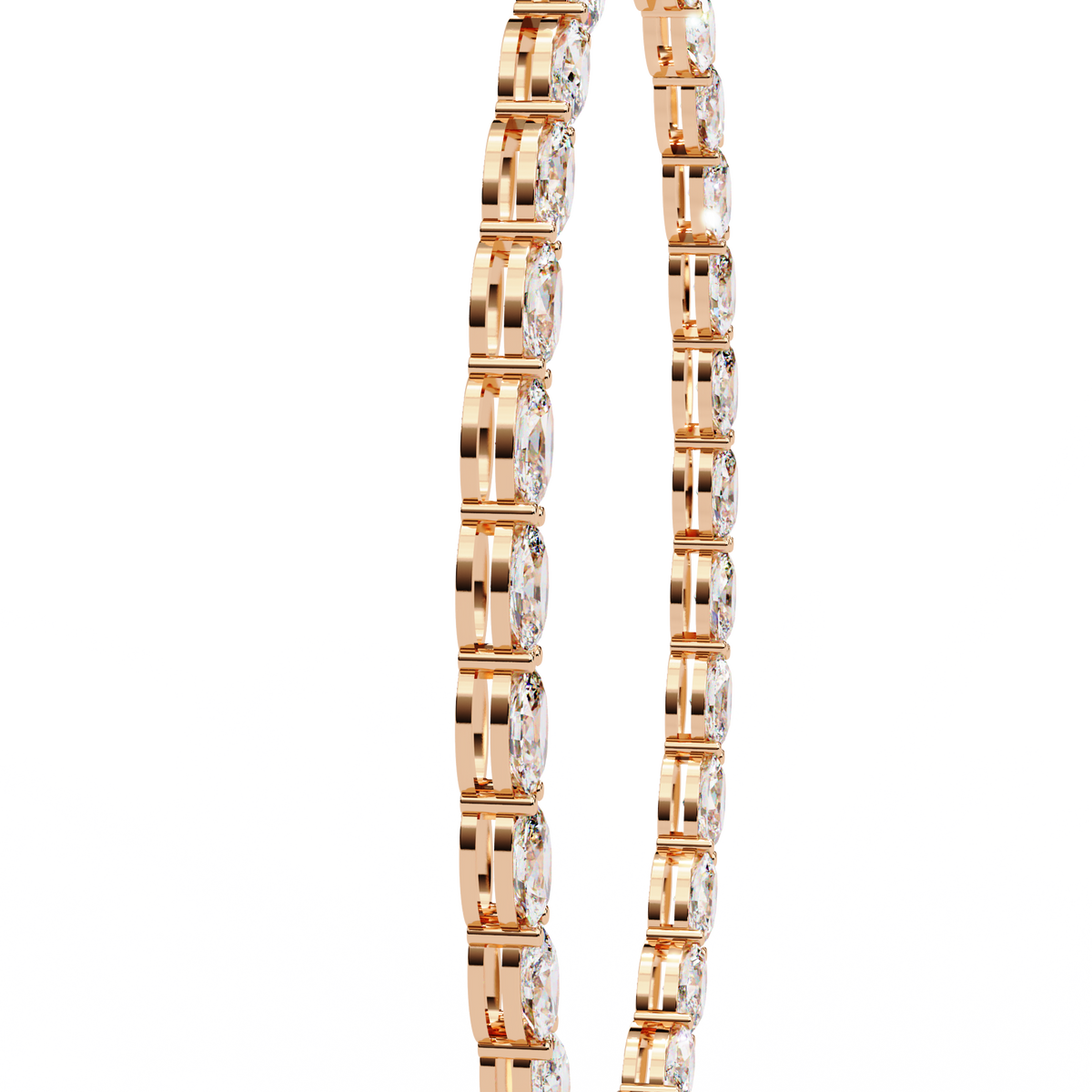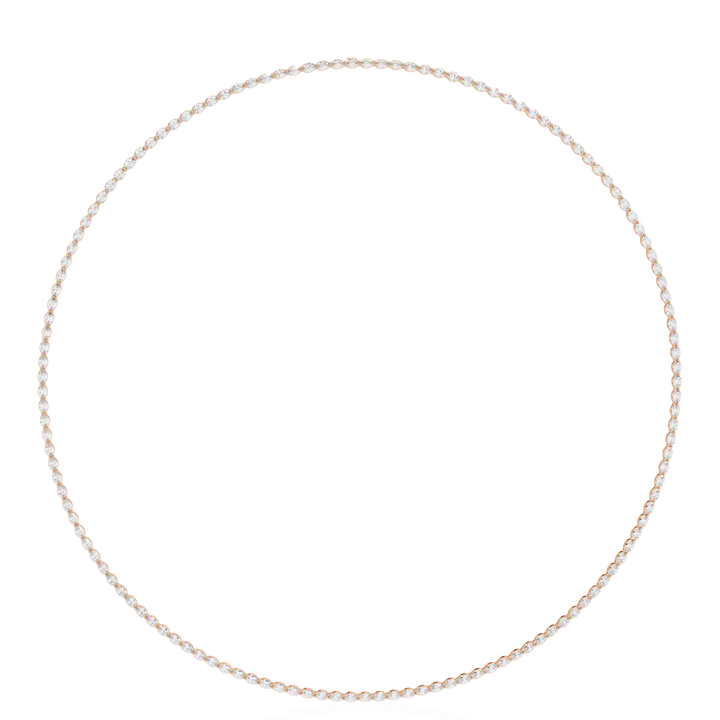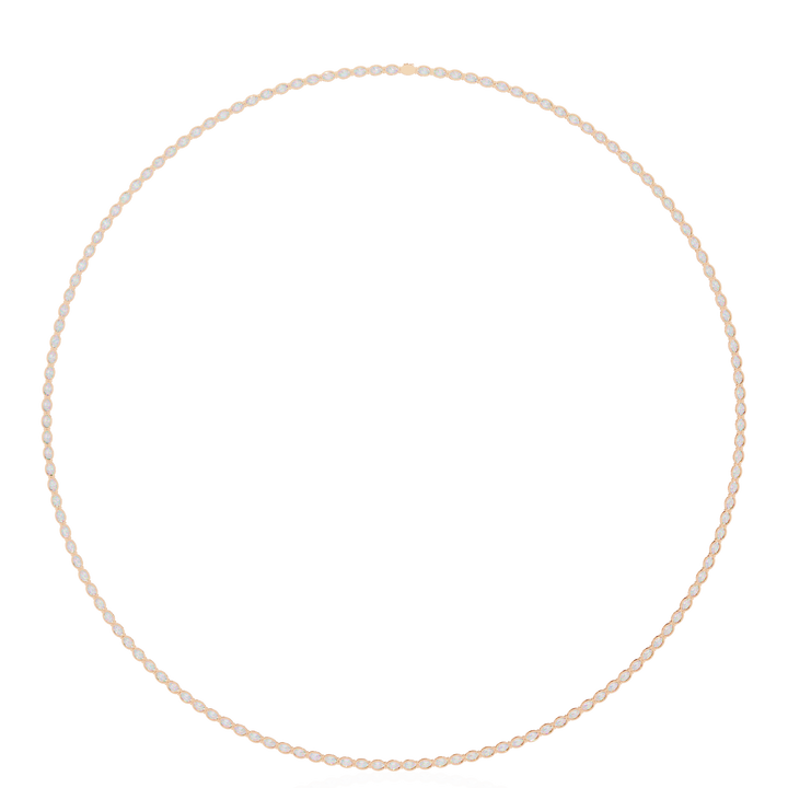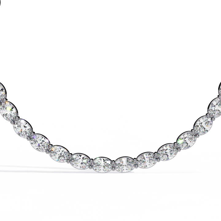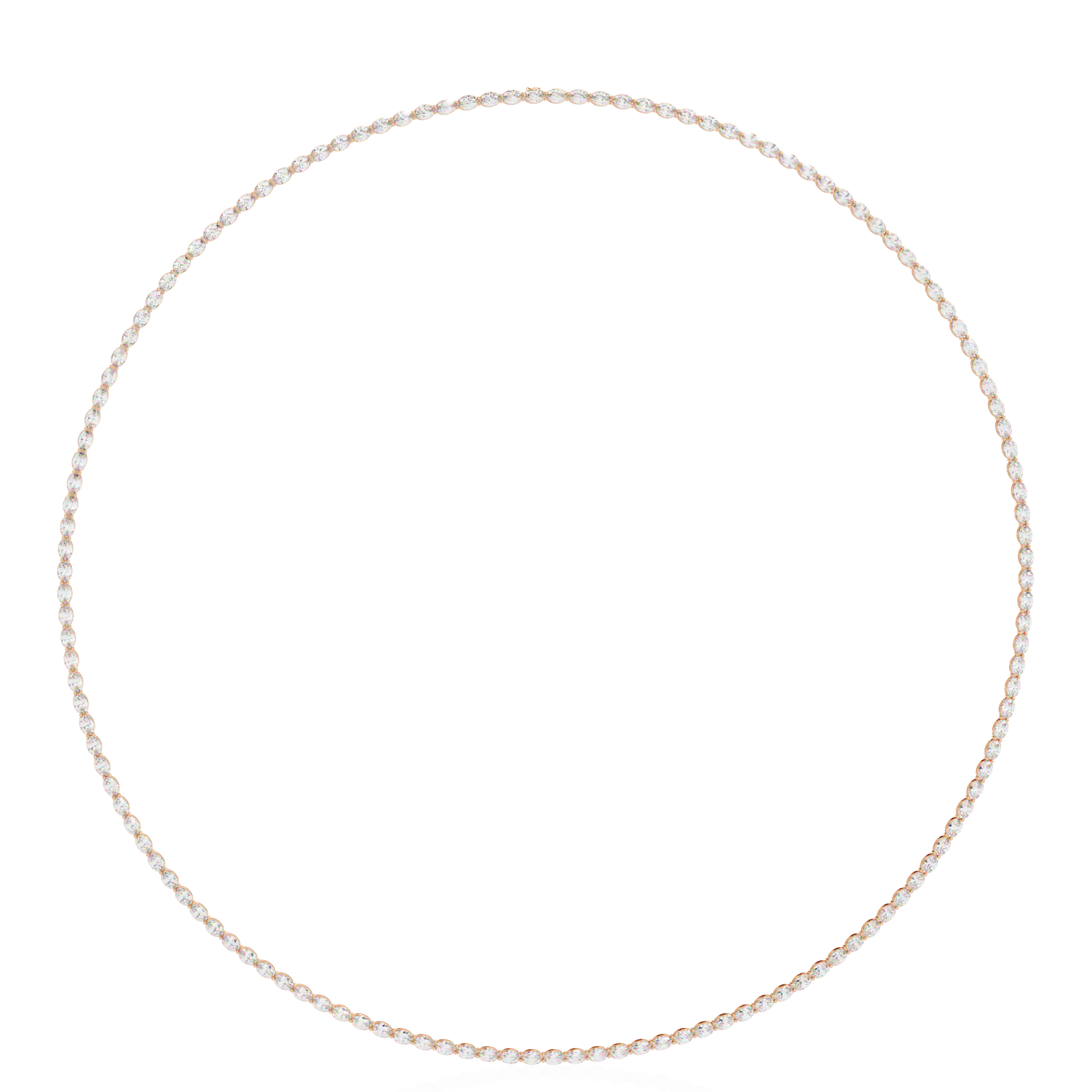 This tennis necklace is crafted from solid 14K gold and features a 6.20 Ct oval cut Lab Grown and Natural Diamond in a channel set unique Art Deco design with prong setting. The metal is 10K yellow gold. Customize any piece in 10K, 14K, or 18K yellow, rose, or white gold, with your choice of lab-grown or natural diamonds where applicable.