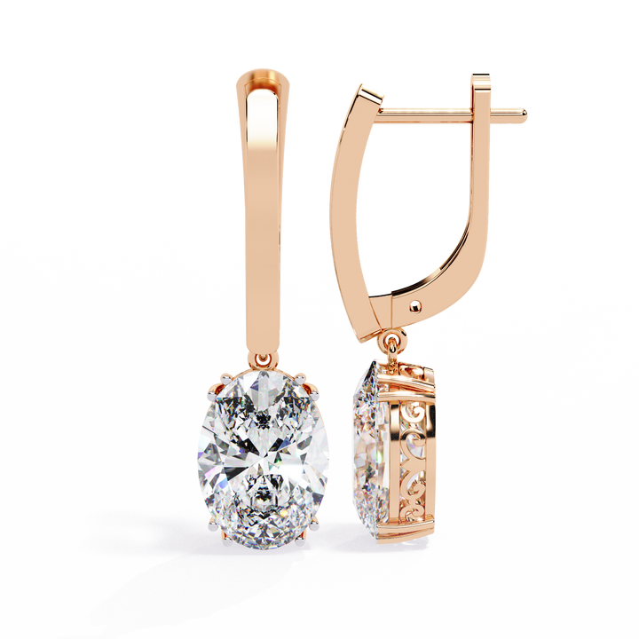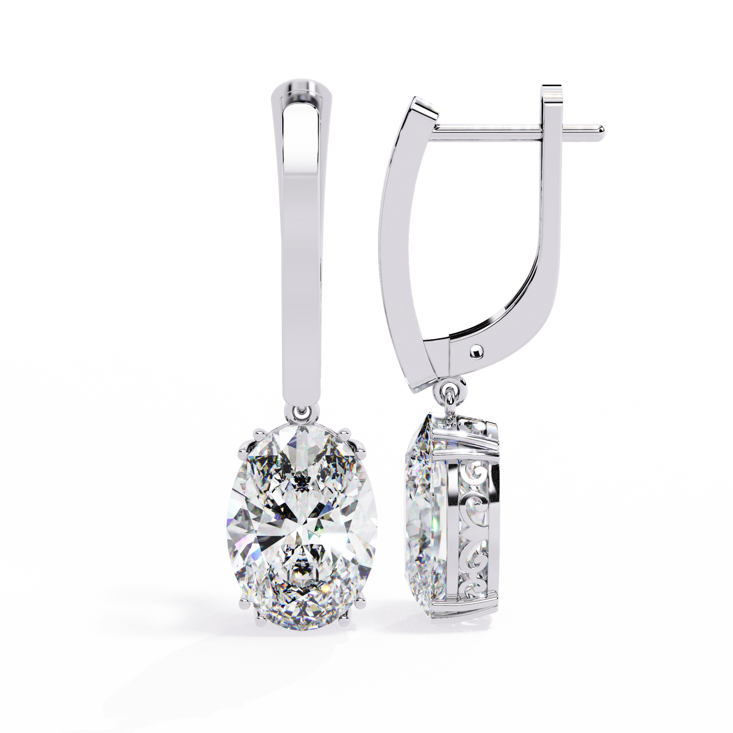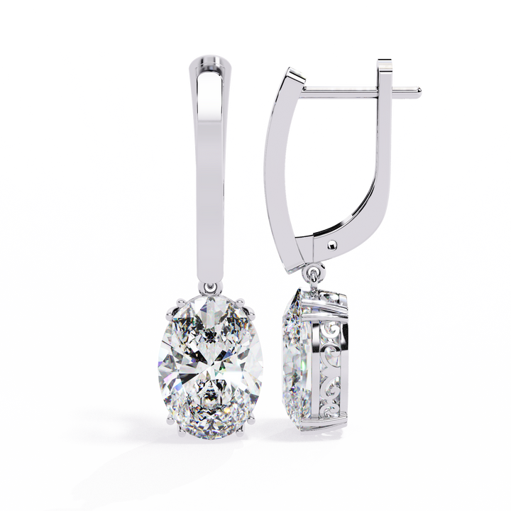 Materials: These hoop earrings are crafted from solid 10K white gold and feature 1.62Ct oval cut lab grown diamonds in a fish lock Bali design set in solid 14K white gold. Customize any piece in 10K, 14K, or 18K yellow, rose, or white gold, with your choice of lab-grown or natural diamonds where applicable.
