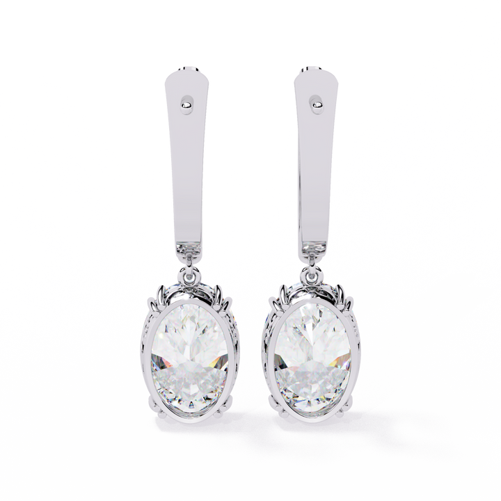 Style Notes: These Oval-Cut Lab-grown Diamond Hoop Earrings by High Carat add a touch of refined elegance with their substantial 1.62Ct oval cut lab-grown diamond design. Crafted in cool white gold, they feature a delicate fish lock Bali design that ensures secure wear and timeless sparkle. Perfect for both everyday sophistication and special occasions, these dainty earrings make a luxurious and meaningful gift for her that exudes classic, subtle brilliance.
