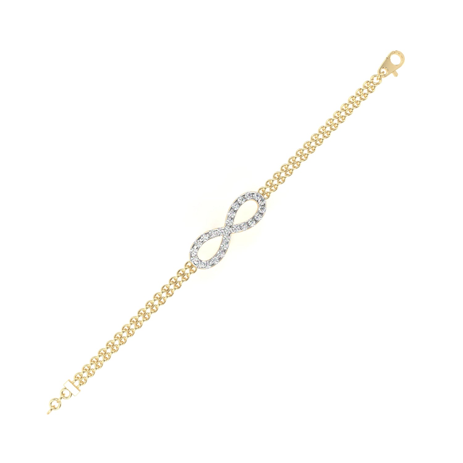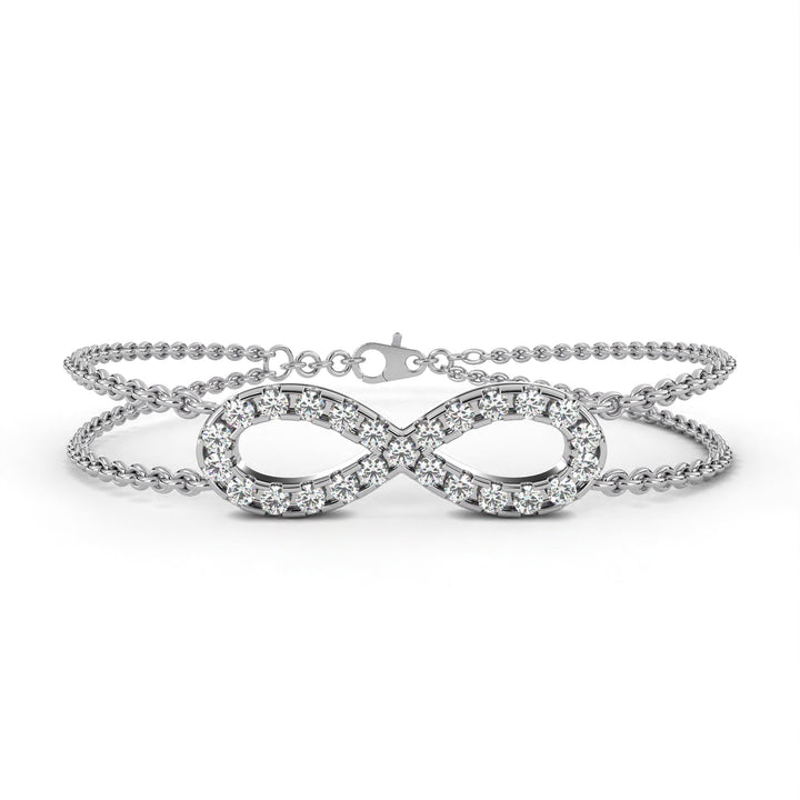 This Round-Cut Lab-grown Diamond Tennis Bracelet by High Carat symbolizes eternal elegance. This delicate infinity shape 0.39Ct round cut lab-grown & natural diamond cuff bracelet is a masterpiece of Art Deco inspiration and timeless sophistication. Each sparkling diamond is expertly prong set within the graceful infinity motif, representing everlasting love. The refined design is perfect for daily wear or special occasions.