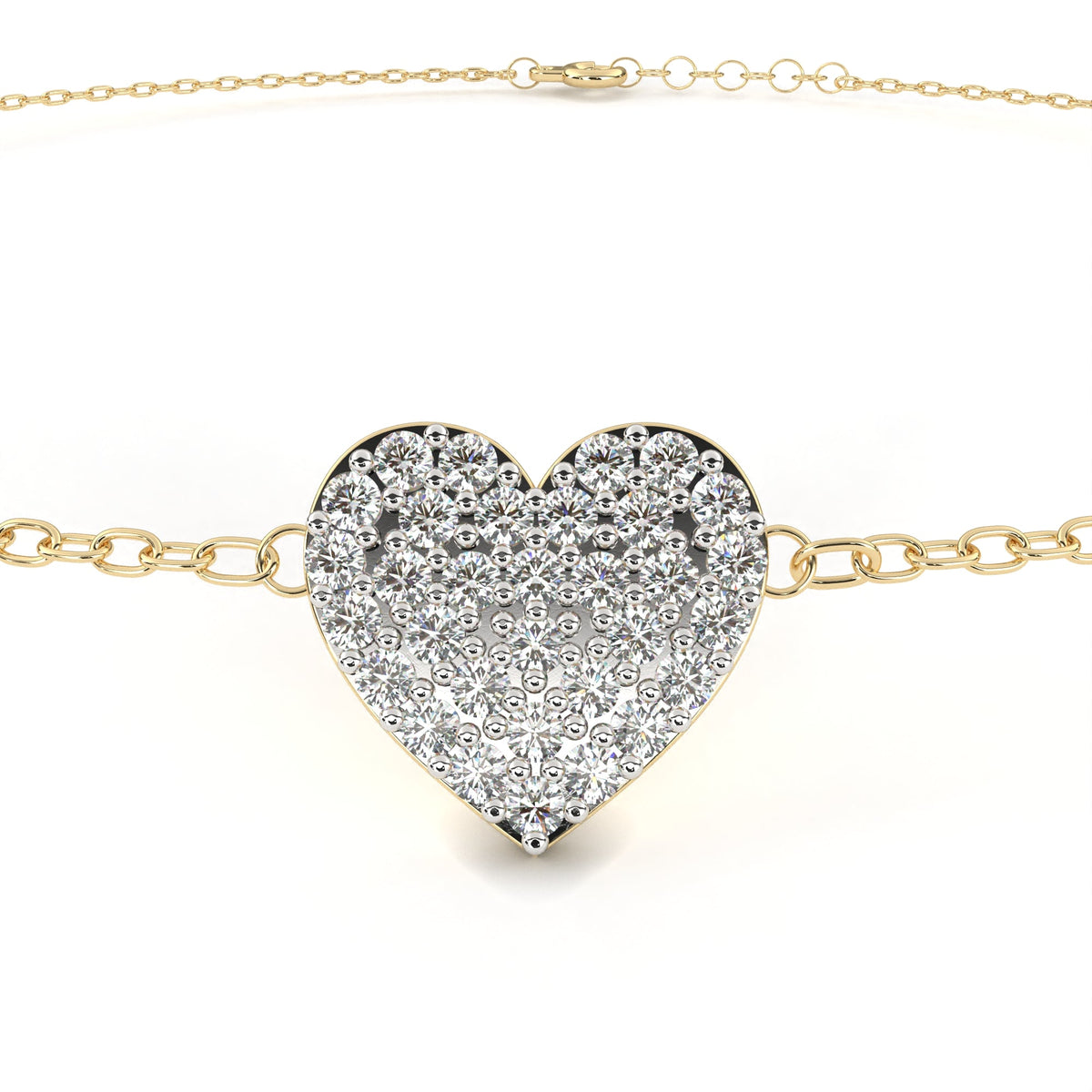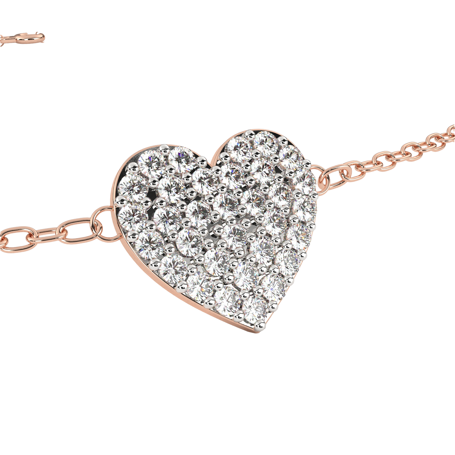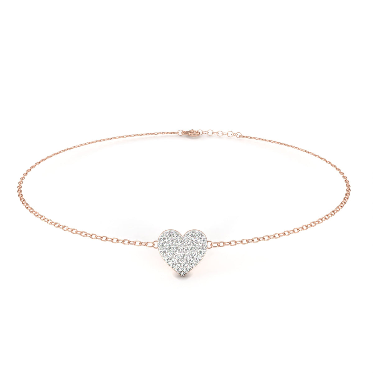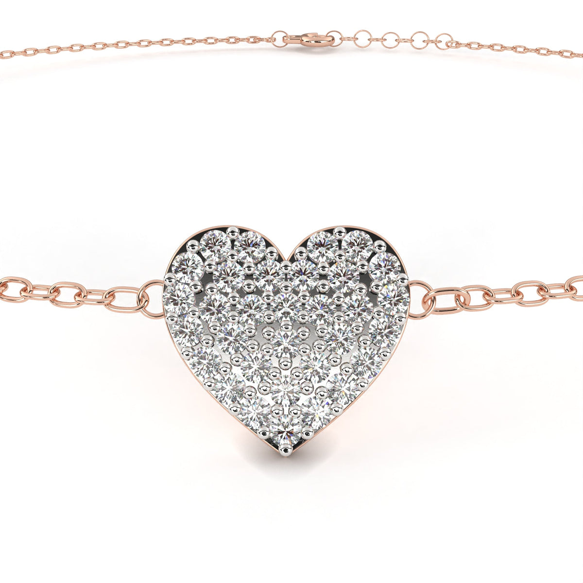 This charm bracelet is crafted from solid 10K white gold and features 0.21Ct round cut lab grown & natural diamonds in a vintage heart shape cluster prong setting set in solid 10K rose gold. Customize any piece in 10K, 14K, or 18K yellow, rose, or white gold, with your choice of lab-grown or natural diamonds where applicable.