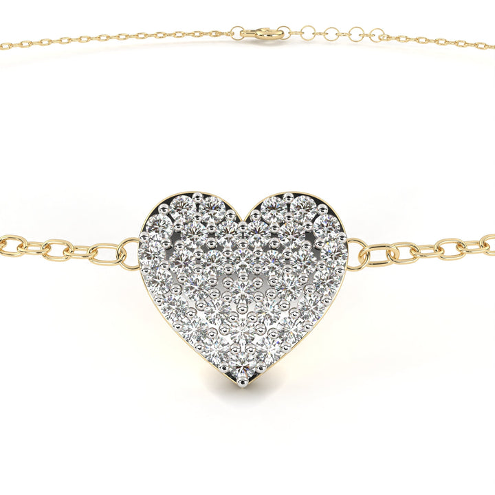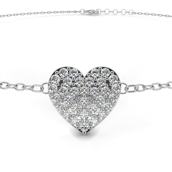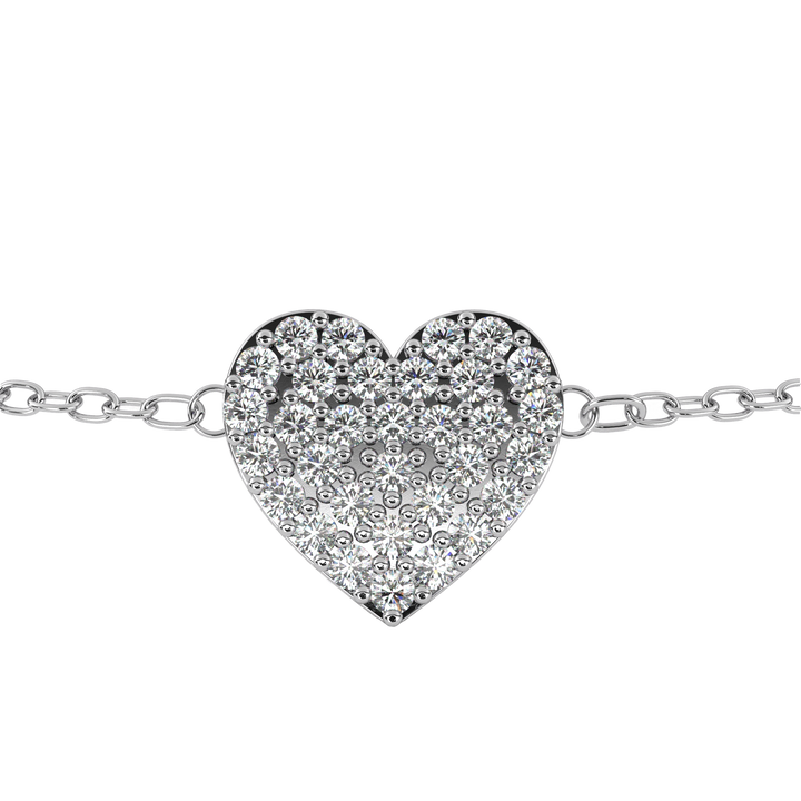 This Heart-Cut Lab-grown Diamond Tennis Bracelet by High Carat is romantic and full of charm. This vintage heart shape 0.21Ct round cut lab-grown & natural diamond charm bracelet is a celebration of timeless beauty and feminine elegance. Handcrafted, it features a delicate heart-shaped cluster of sparkling round cut diamonds, meticulously prong set. The vintage-inspired design is perfect for party wear. A treasured keepsake for girls who adore graceful, unique jewelry.