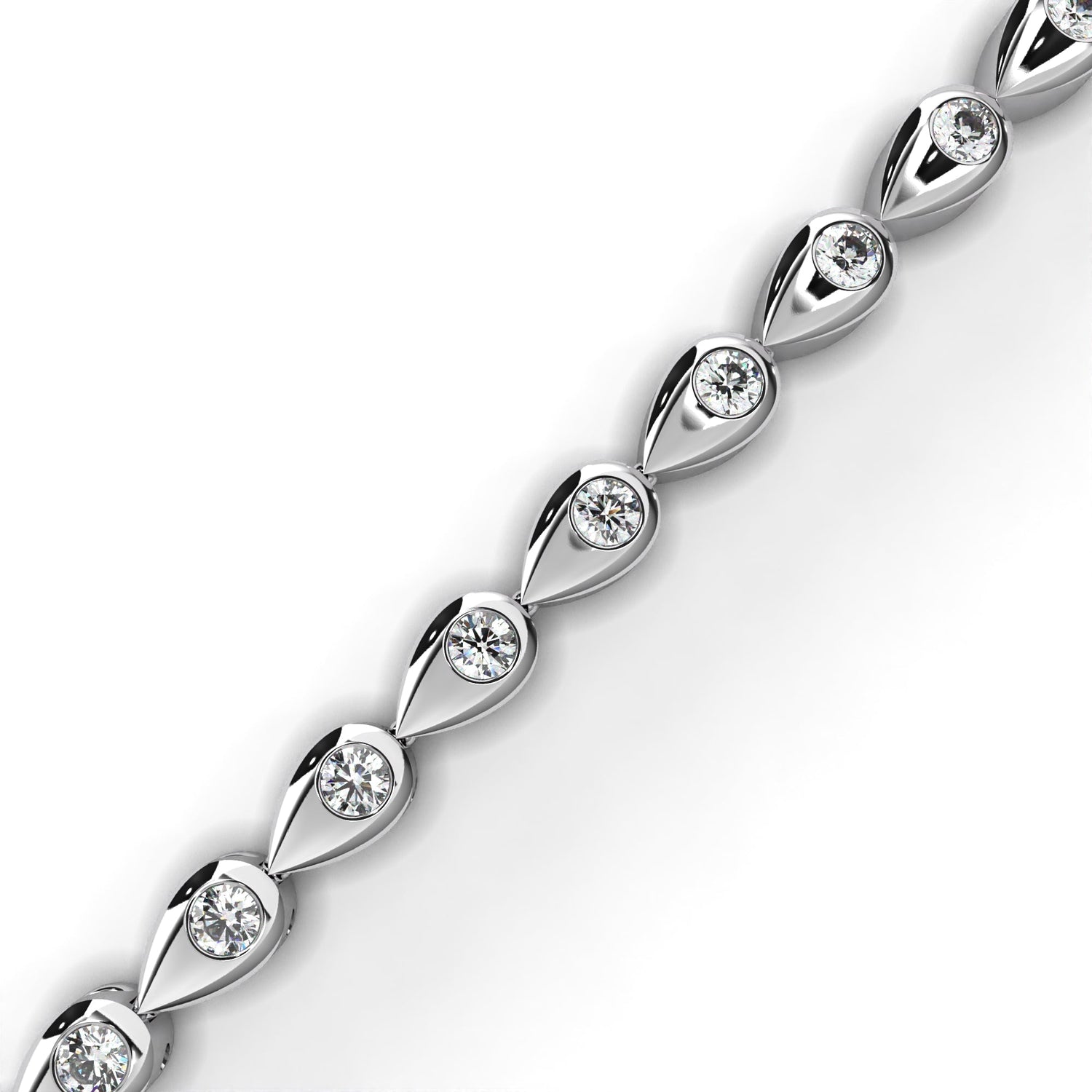 This tennis bracelet is crafted from solid 10K white gold and features 1.02Ct pear shape and round cut lab grown and natural diamonds in a minimalist cluster design set in solid 18K white gold. Customize any piece in 10K, 14K, or 18K yellow, rose, or white gold, with your choice of lab-grown or natural diamonds where applicable.