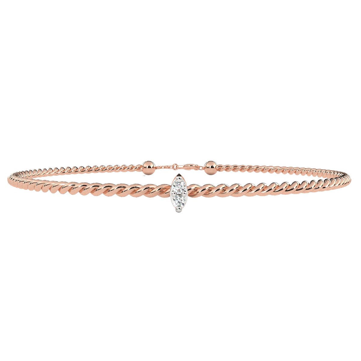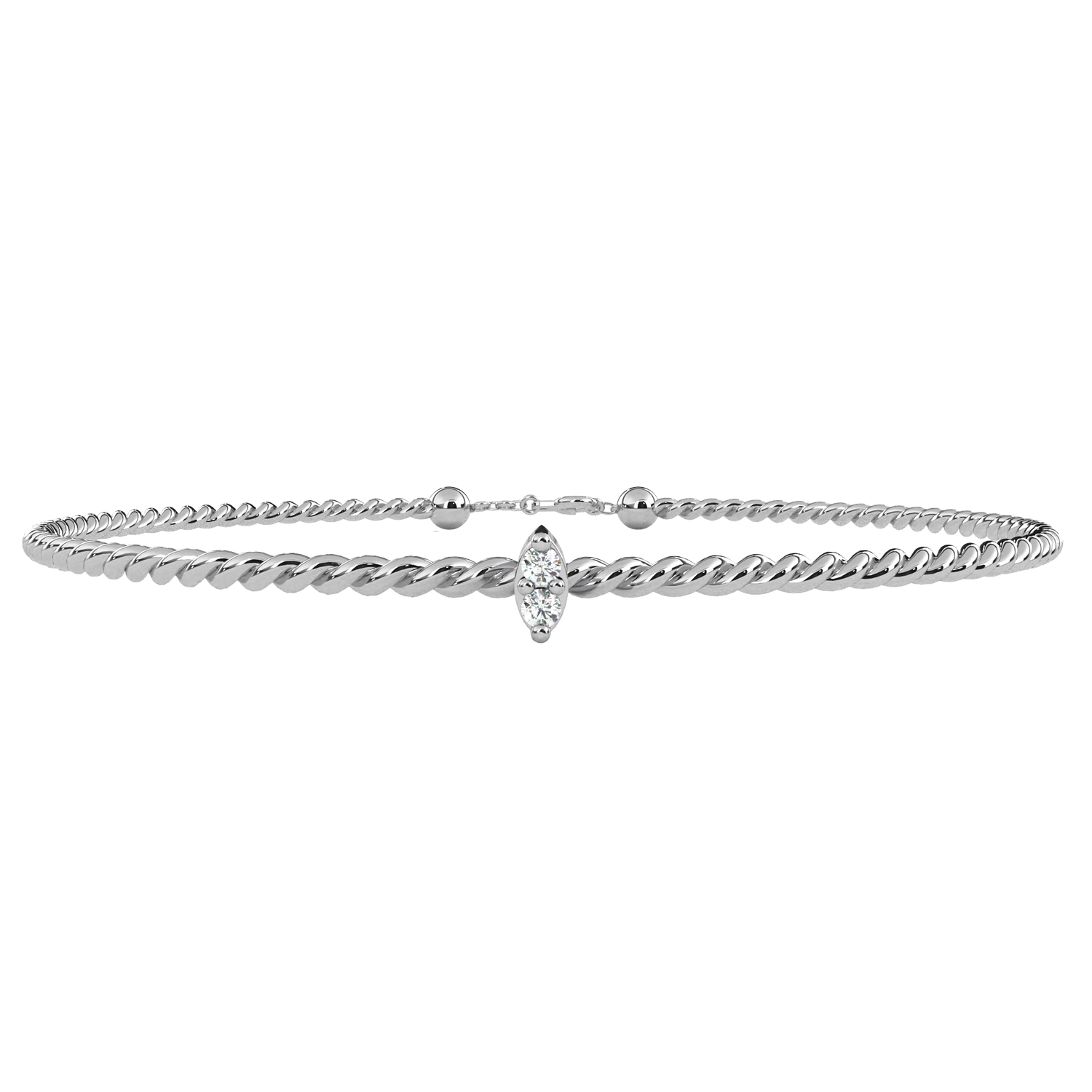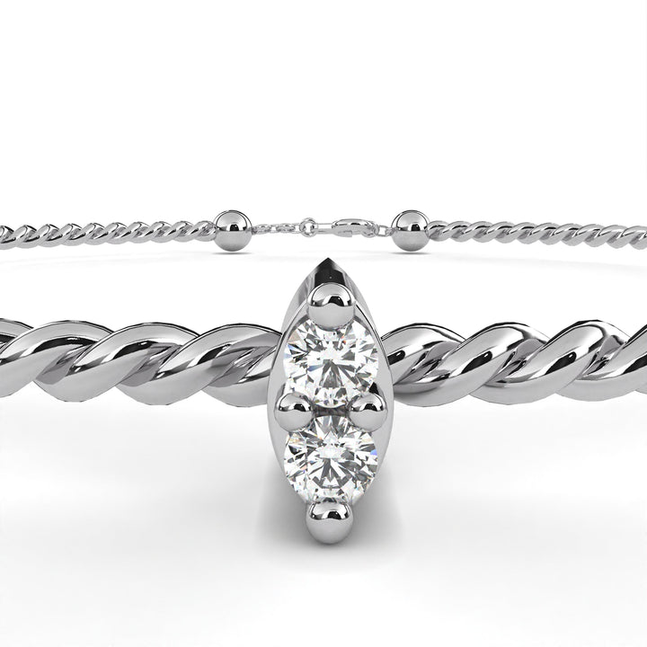 This cuff bracelet is crafted from solid 10K white gold and features 0.010Ct round cut white colorless lab grown diamond solitaire prong set design in a stackable minimalist style set in solid 10K rose gold. Customize any piece in 10K, 14K, or 18K yellow, rose, or white gold, with your choice of lab-grown or natural diamonds where applicable.