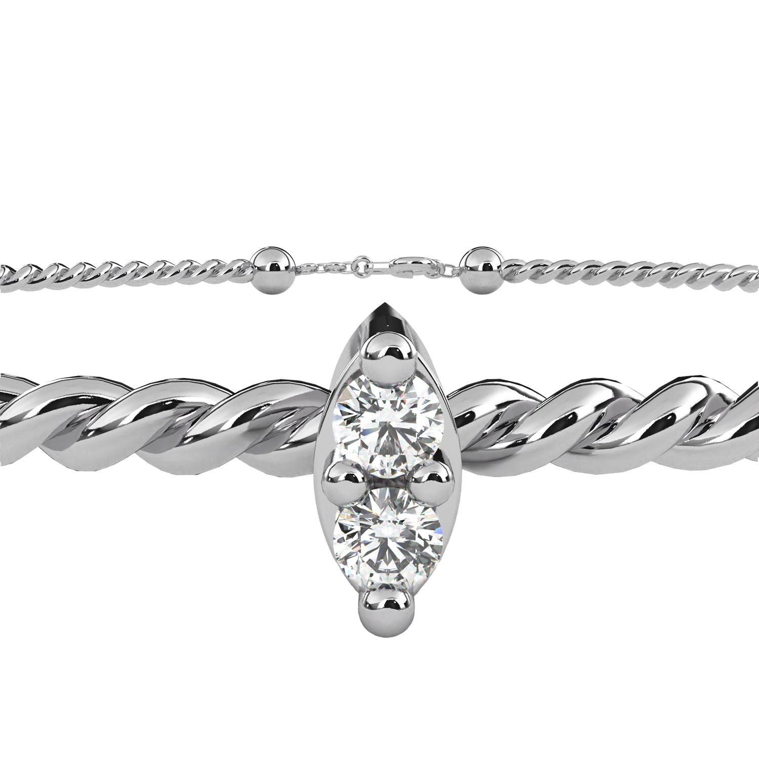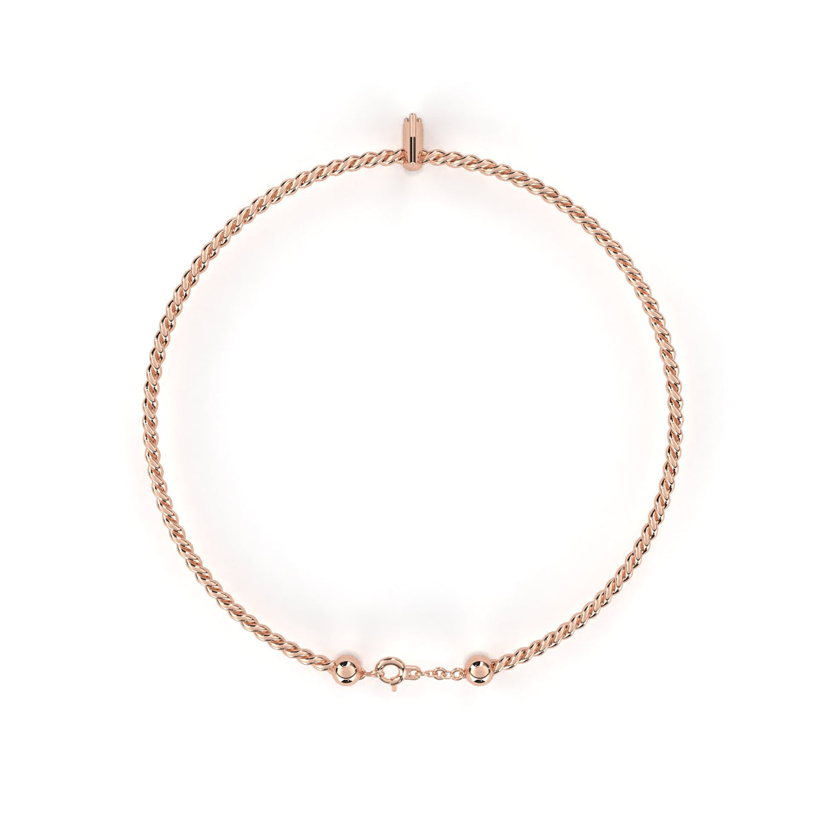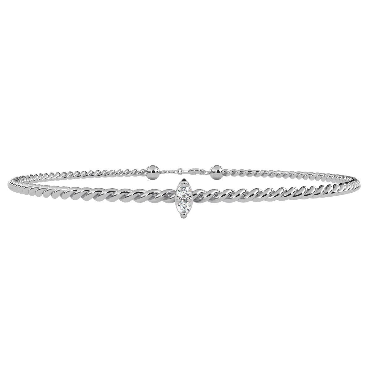 This cuff bracelet is crafted from solid 10K white gold and features 0.010Ct round cut white colorless lab grown diamond solitaire prong set design in a stackable minimalist style set in solid 10K rose gold. Customize any piece in 10K, 14K, or 18K yellow, rose, or white gold, with your choice of lab-grown or natural diamonds where applicable.