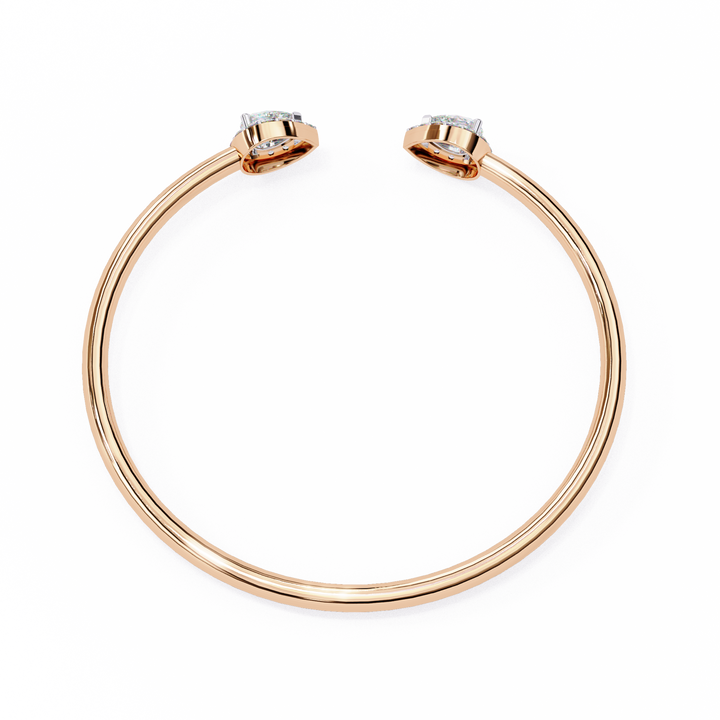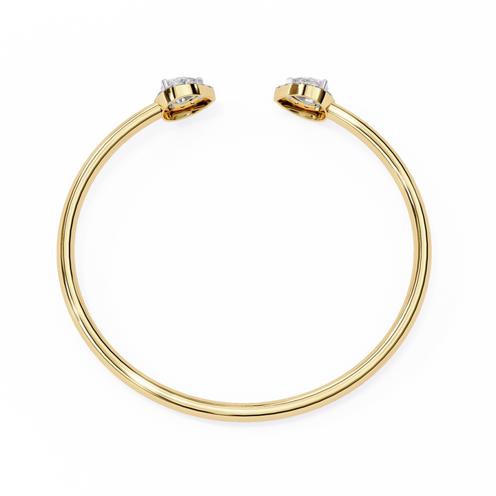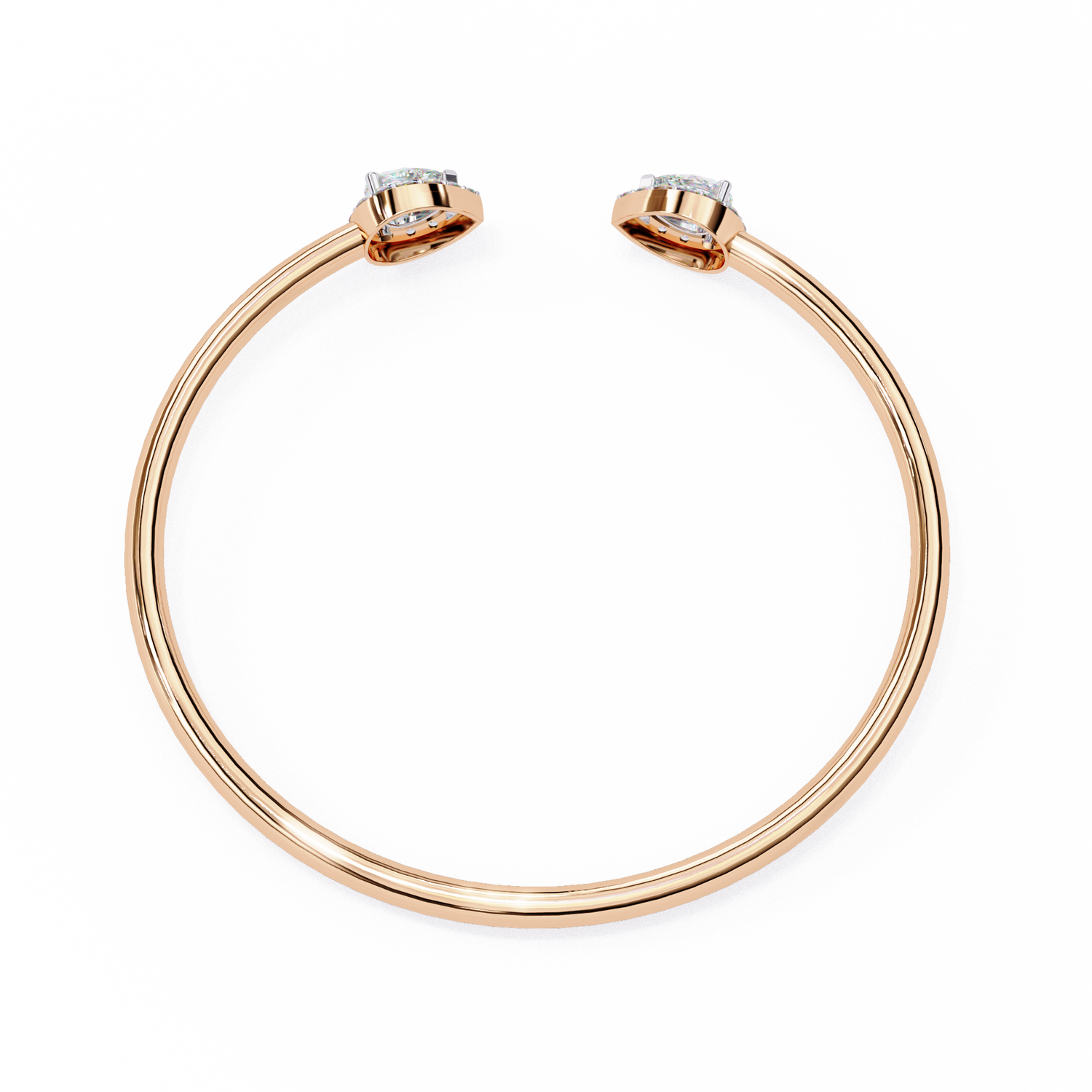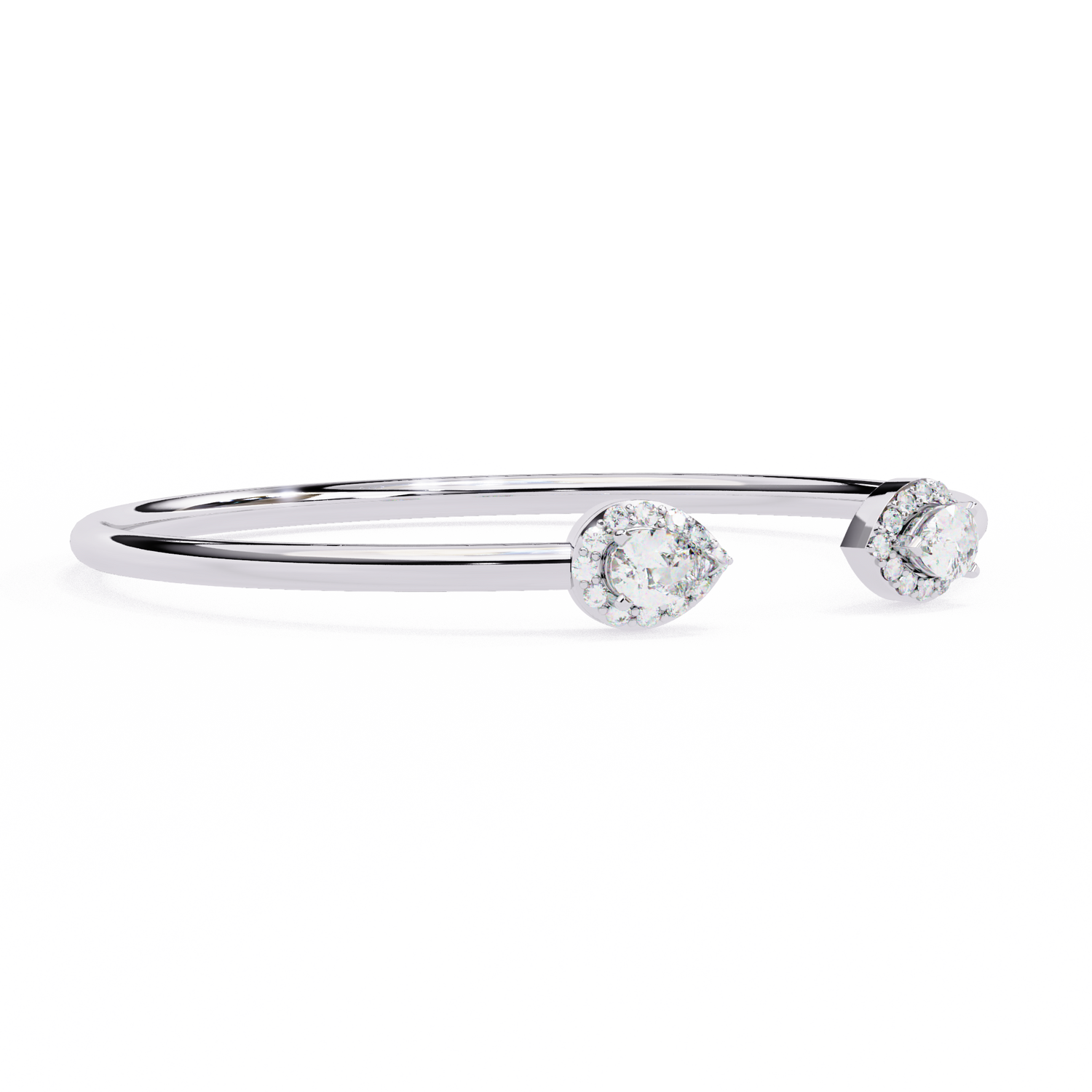 This Pear-Cut Lab-grown Diamond Bangles by High Carat are designed to radiate charm. This open-style 1.17Ct pear and round cut lab-grown diamond bangle is adorned with a dainty halo design. Made with high-quality diamonds, it adds a touch of sophistication to her party wear collection, combining a modern open silhouette with classic diamond sparkle.