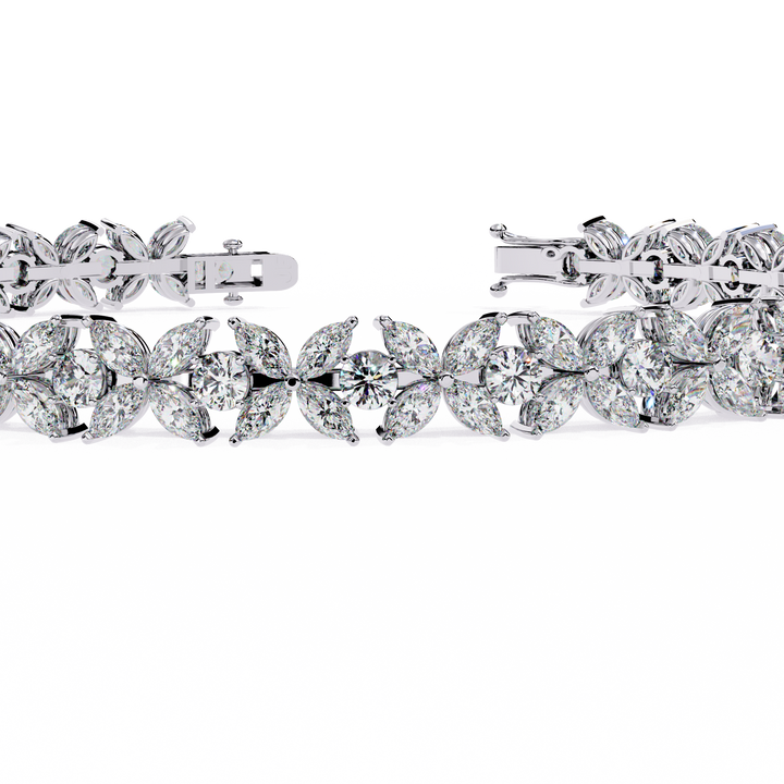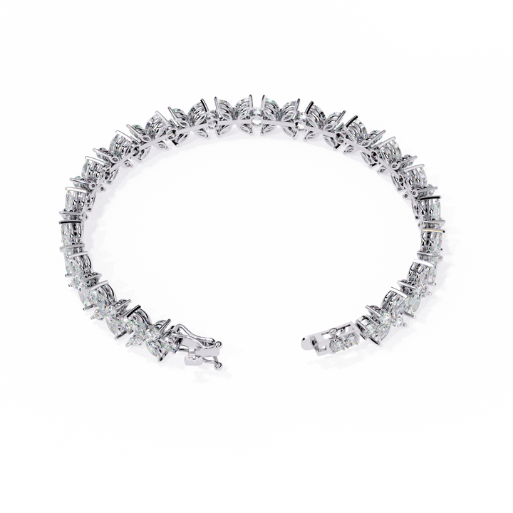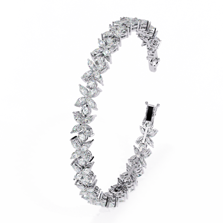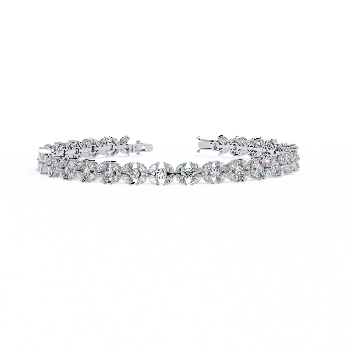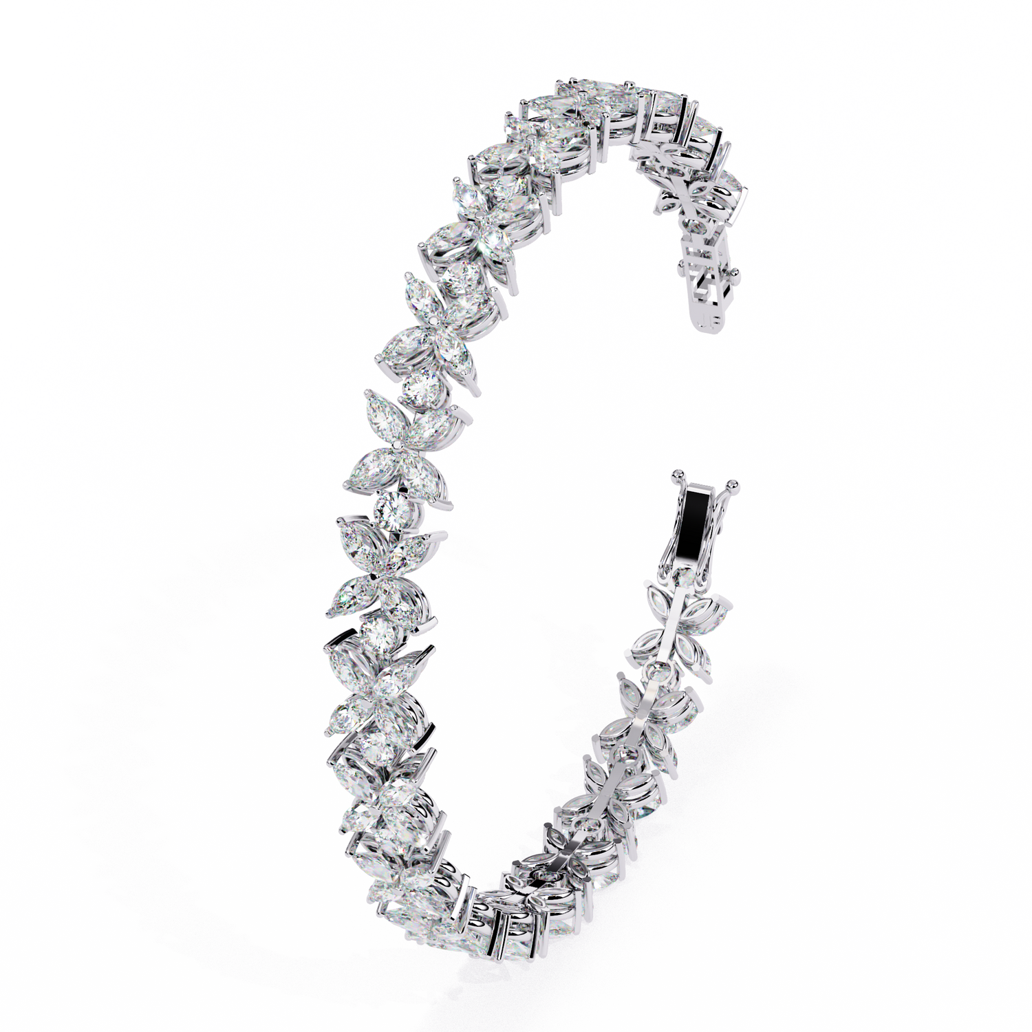 This Marquise-Cut Lab-grown Diamond Antique Bracelet by High Carat is delicate and romantic. This 6.25Ct marquise and round cut lab-grown diamond tennis bracelet is crafted with an antique vintage charm. Designed for stacking or wearing solo, it makes a timeless wedding accessory and a meaningful gift for her, with the unique marquise cuts adding a touch of floral-inspired grace.