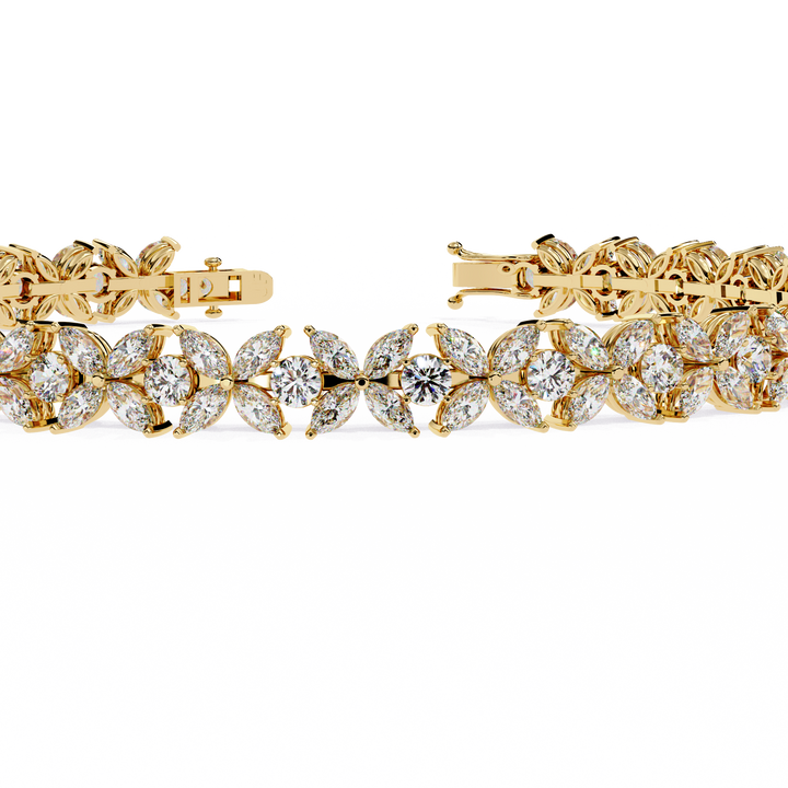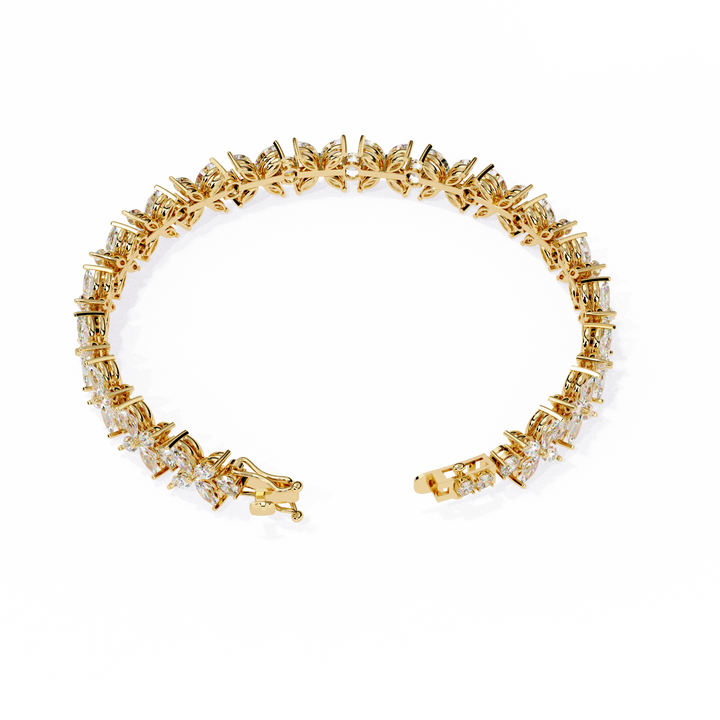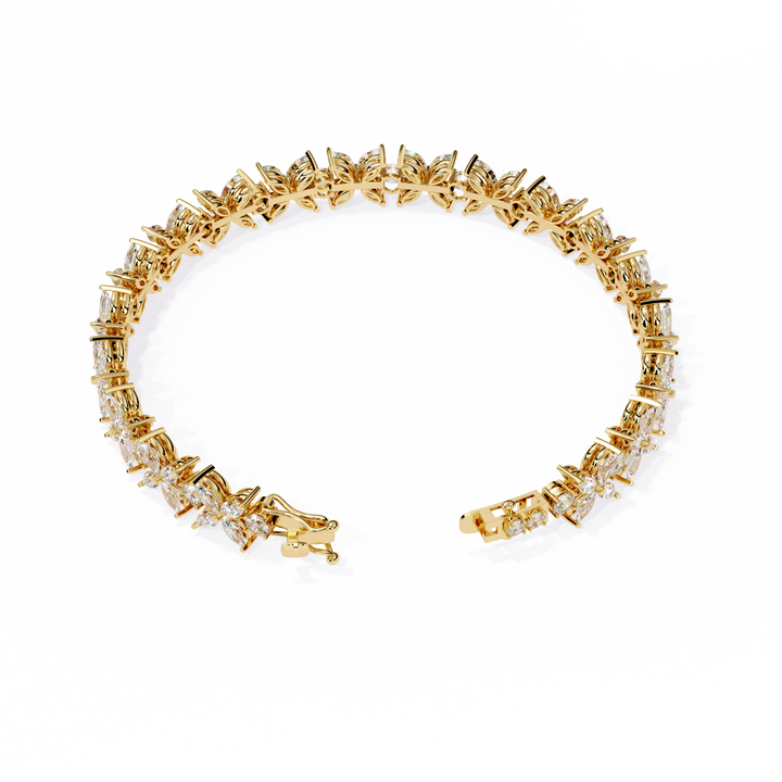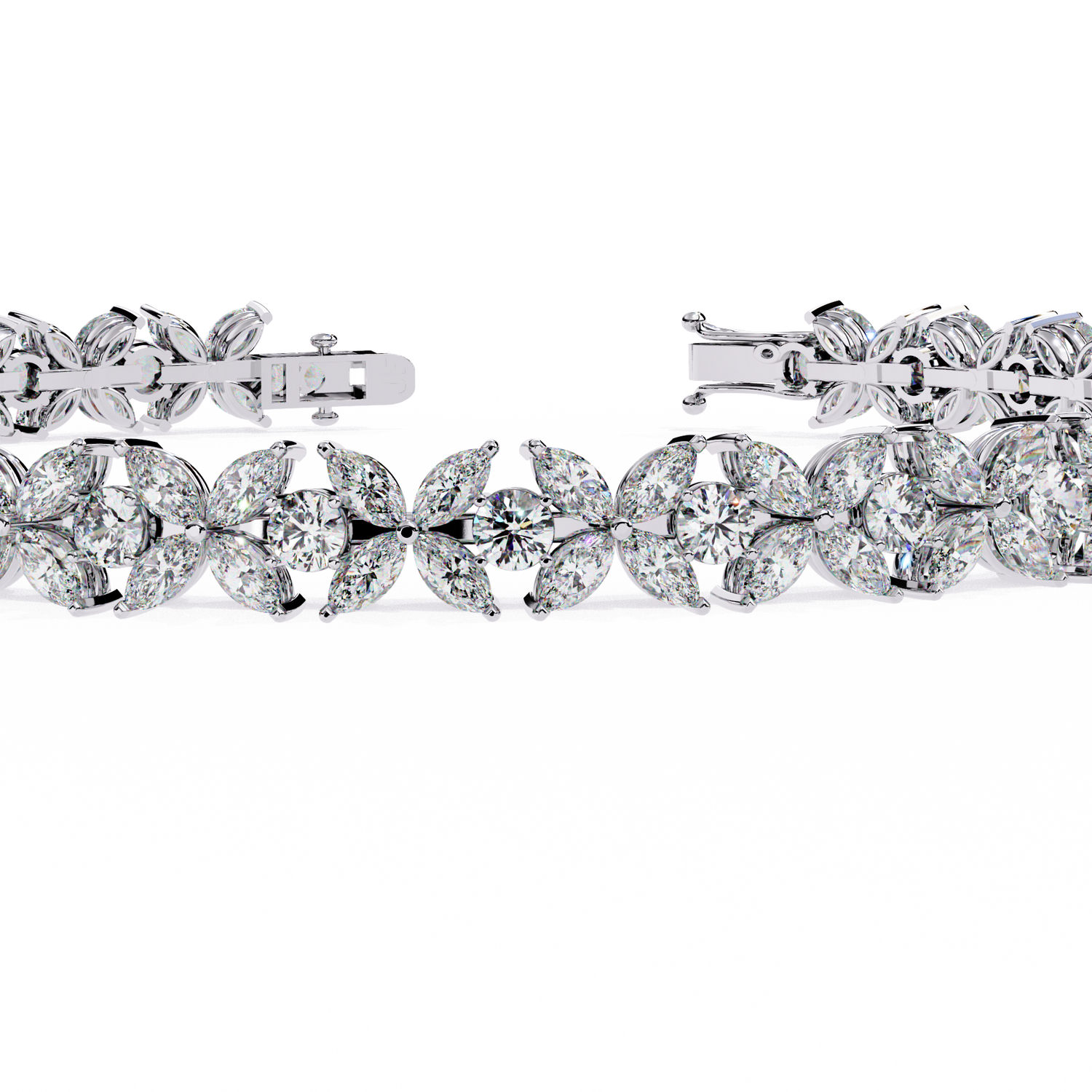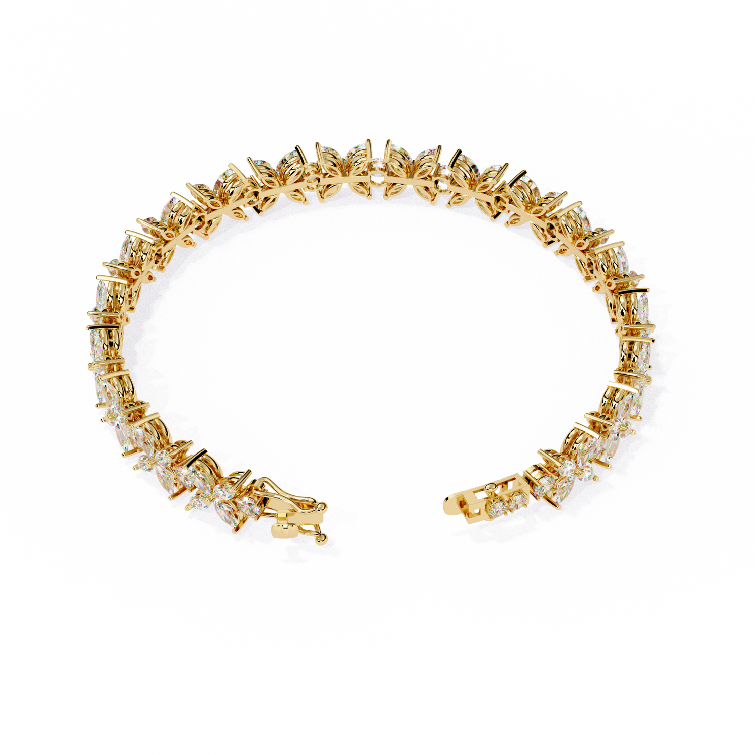 This Marquise-Cut Lab-grown Diamond Antique Bracelet by High Carat is delicate and romantic. This 6.25Ct marquise and round cut lab-grown diamond tennis bracelet is crafted with an antique vintage charm. Designed for stacking or wearing solo, it makes a timeless wedding accessory and a meaningful gift for her, with the unique marquise cuts adding a touch of floral-inspired grace.