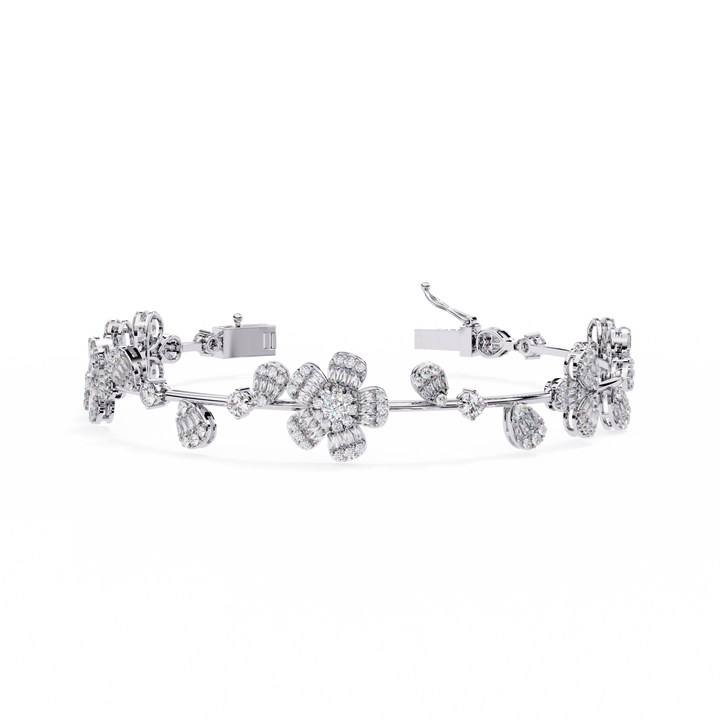 This Round-Cut Lab-grown Diamond Tennis Bracelet by High Carat will elevate her style with this elegant 2.36Ct baguette and round cut diamond minimalist tennis bracelet. The sleek combination of glamorous baguette cuts and brilliant round diamonds creates a harmonious balance of shine and sophistication. Its custom, stackable design is perfect for layering or wearing solo for any celebration.