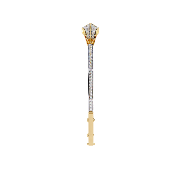 This bangle bracelet is crafted from solid 10K white gold and features 0.55Ct round cut lab grown diamond in an antique Art Deco unique handcrafted design set in solid 14K yellow gold. Customize any piece in 10K, 14K, or 18K yellow, rose, or white gold, with your choice of lab-grown or natural diamonds where applicable.