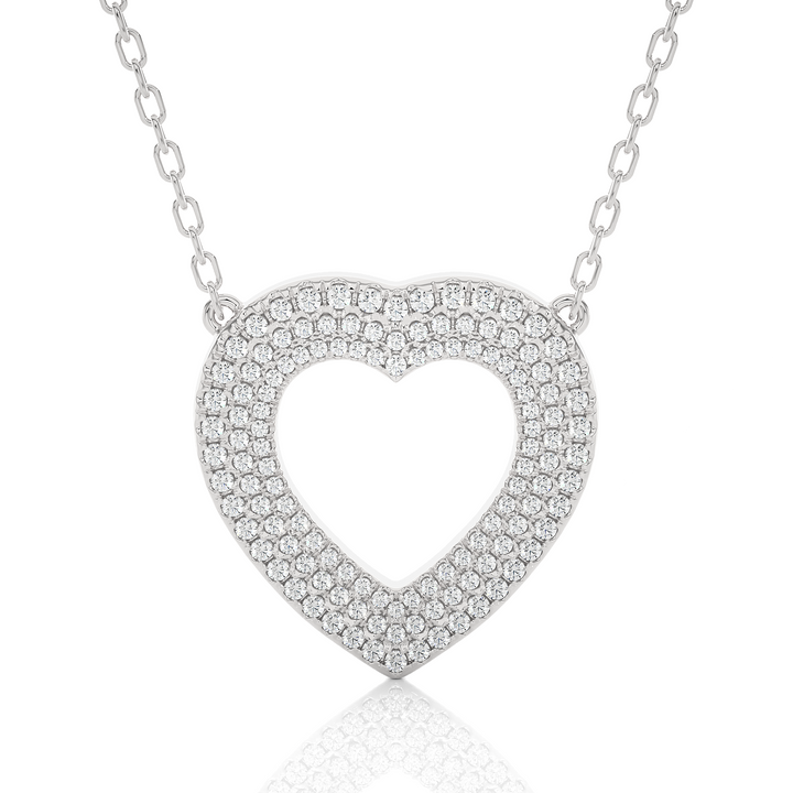This Round-Cut Lab-grown Diamond Pendant in 10K White Gold by High Carat adds a touch of vintage charm to your look. This exquisite handmade Round Diamond Heart Pendant is a timeless accessory that is perfect for an anniversary gift and is sure to make a statement.