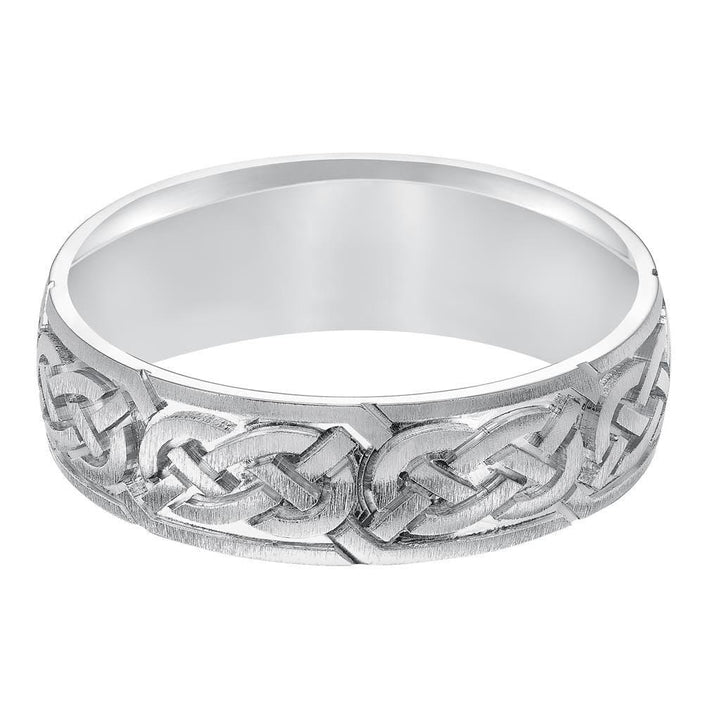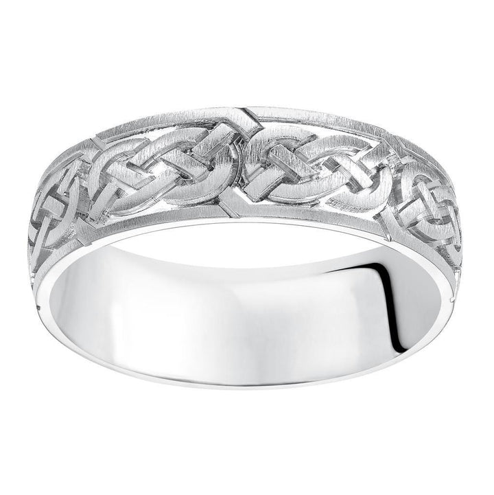 14k White Gold Engraved Celtic Knot Pattern Men’s Wedding Band With Satin Finish - 6.5mm - 8.5mm