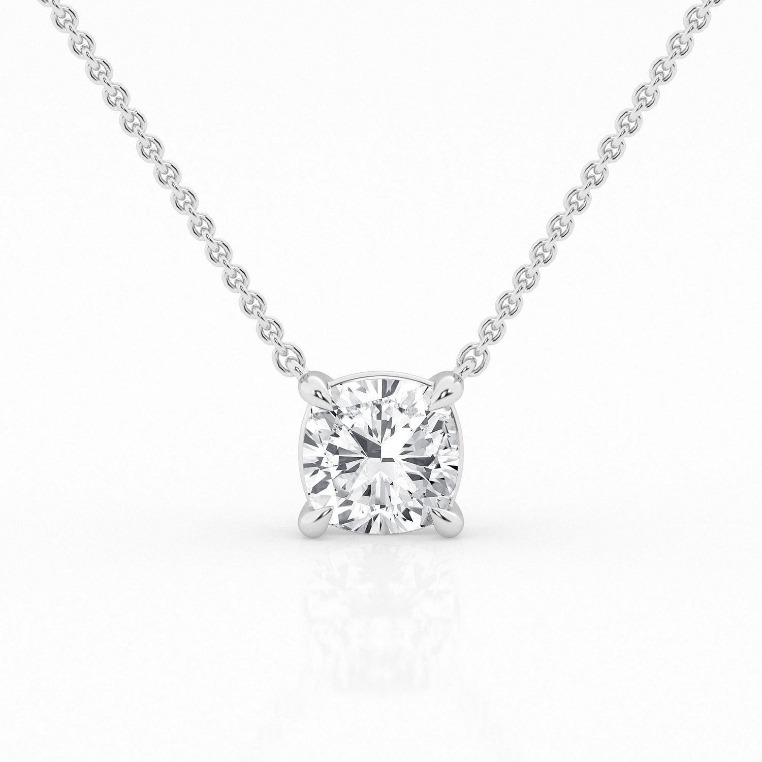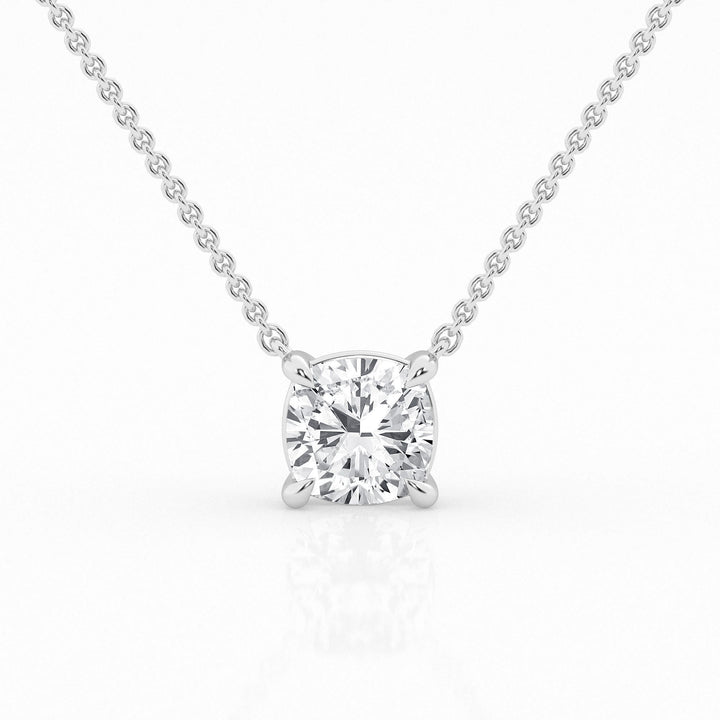 Crafted in 14k white gold with 2.00 ct cushion-cut lab-grown diamond, polished finish, solitaire pendant setting, hypoallergenic, durable.