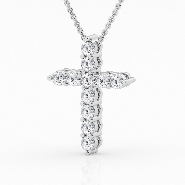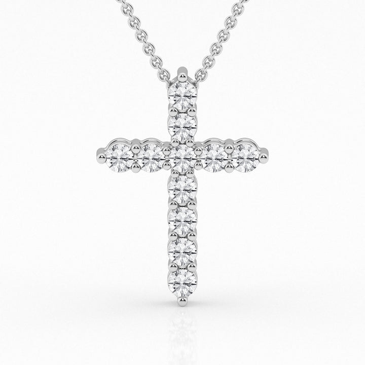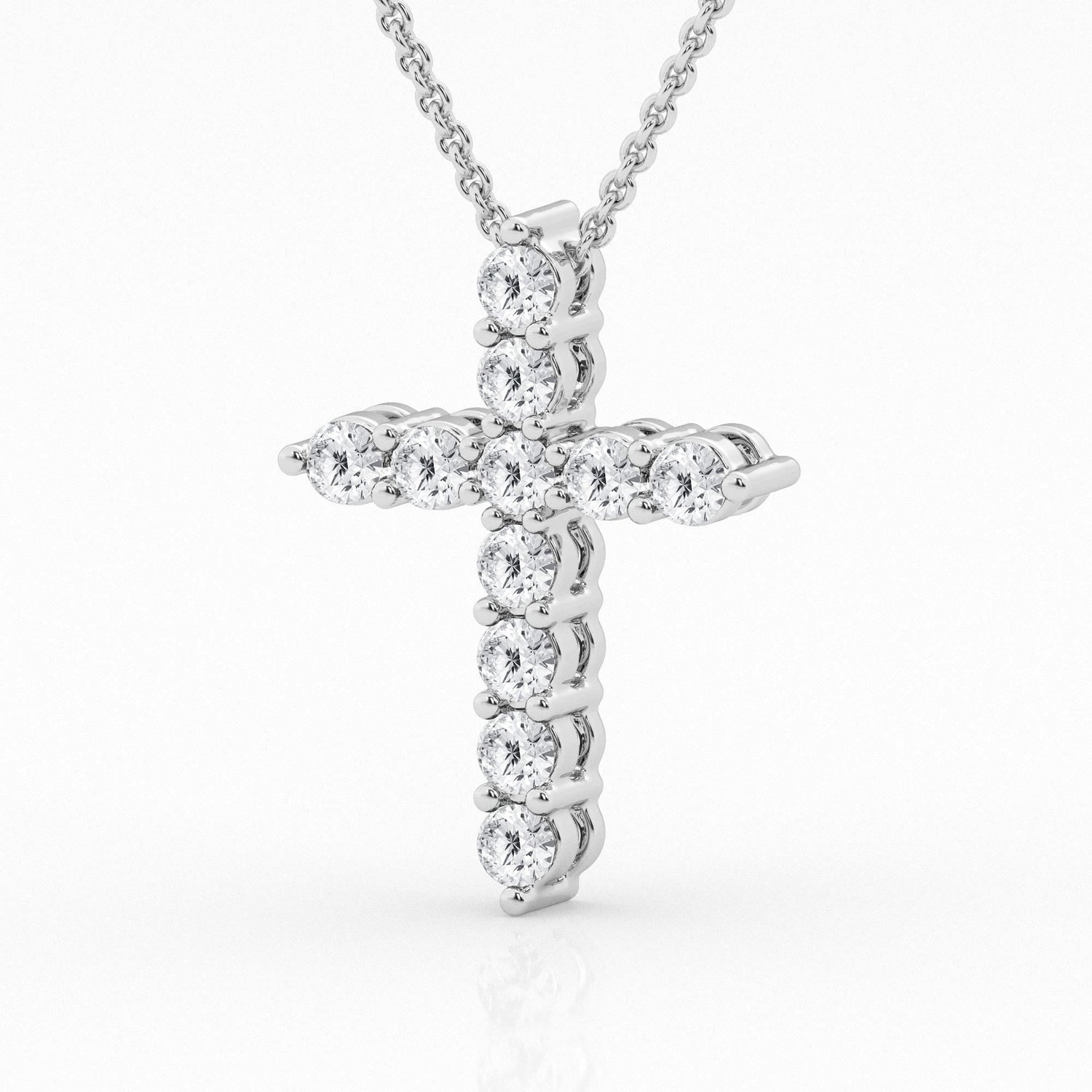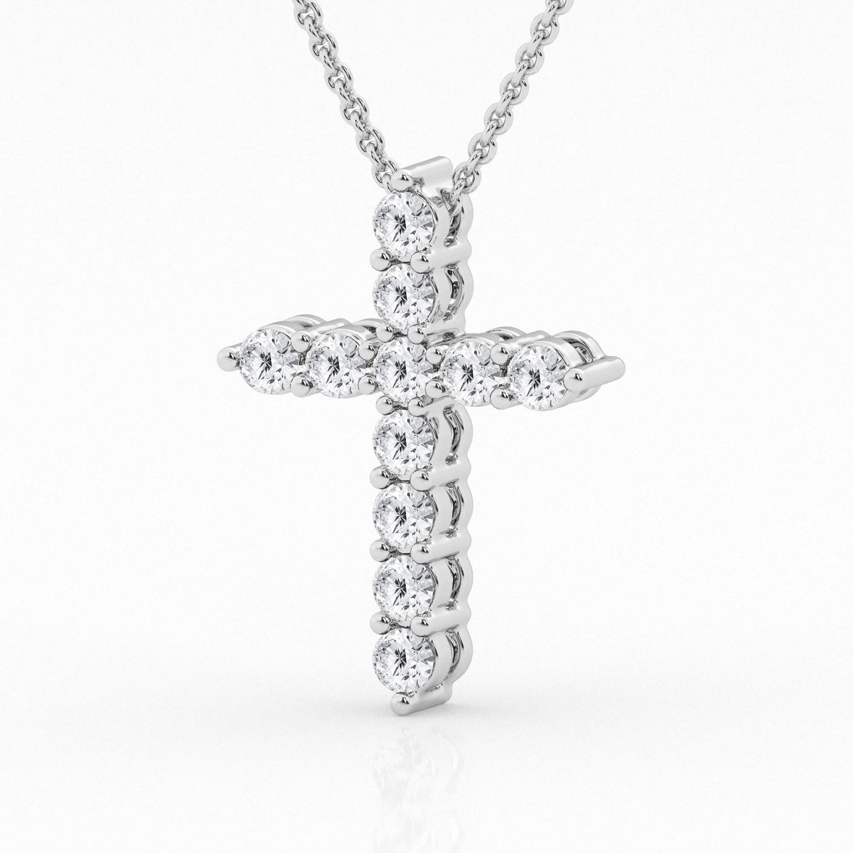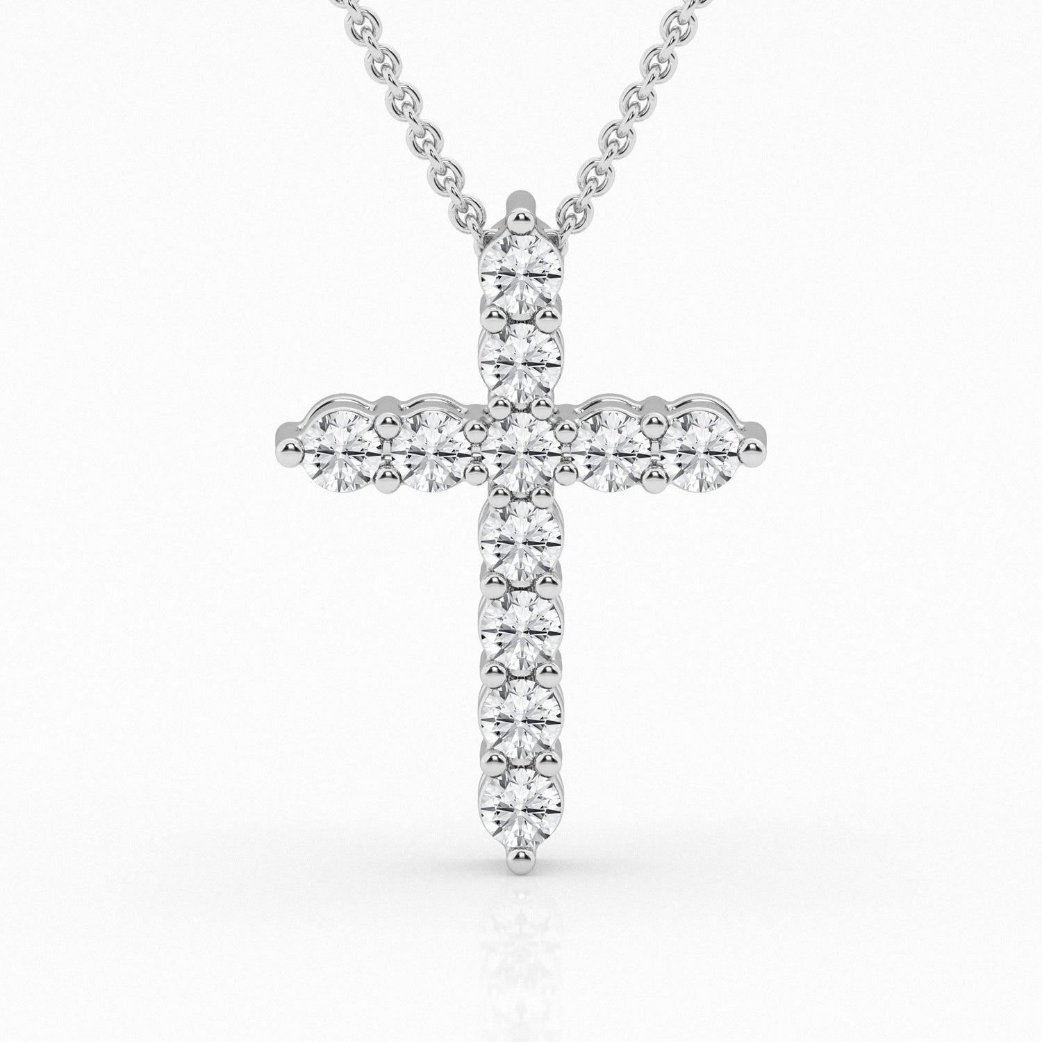 Crafted in 14k white gold with 1.00 cttw round lab-grown diamonds, polished cross pendant, secure bail, hypoallergenic, durable.