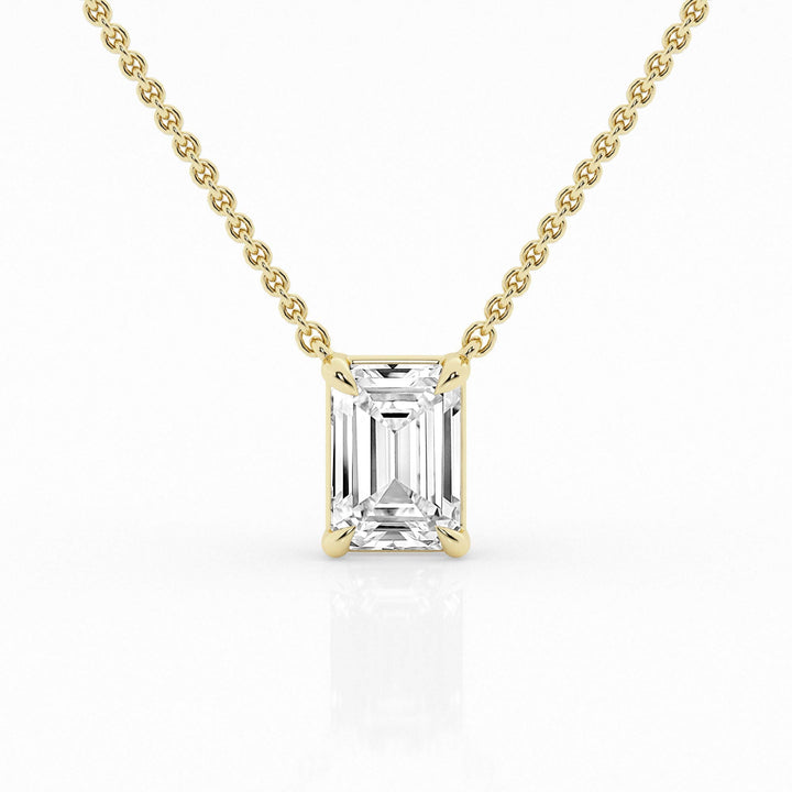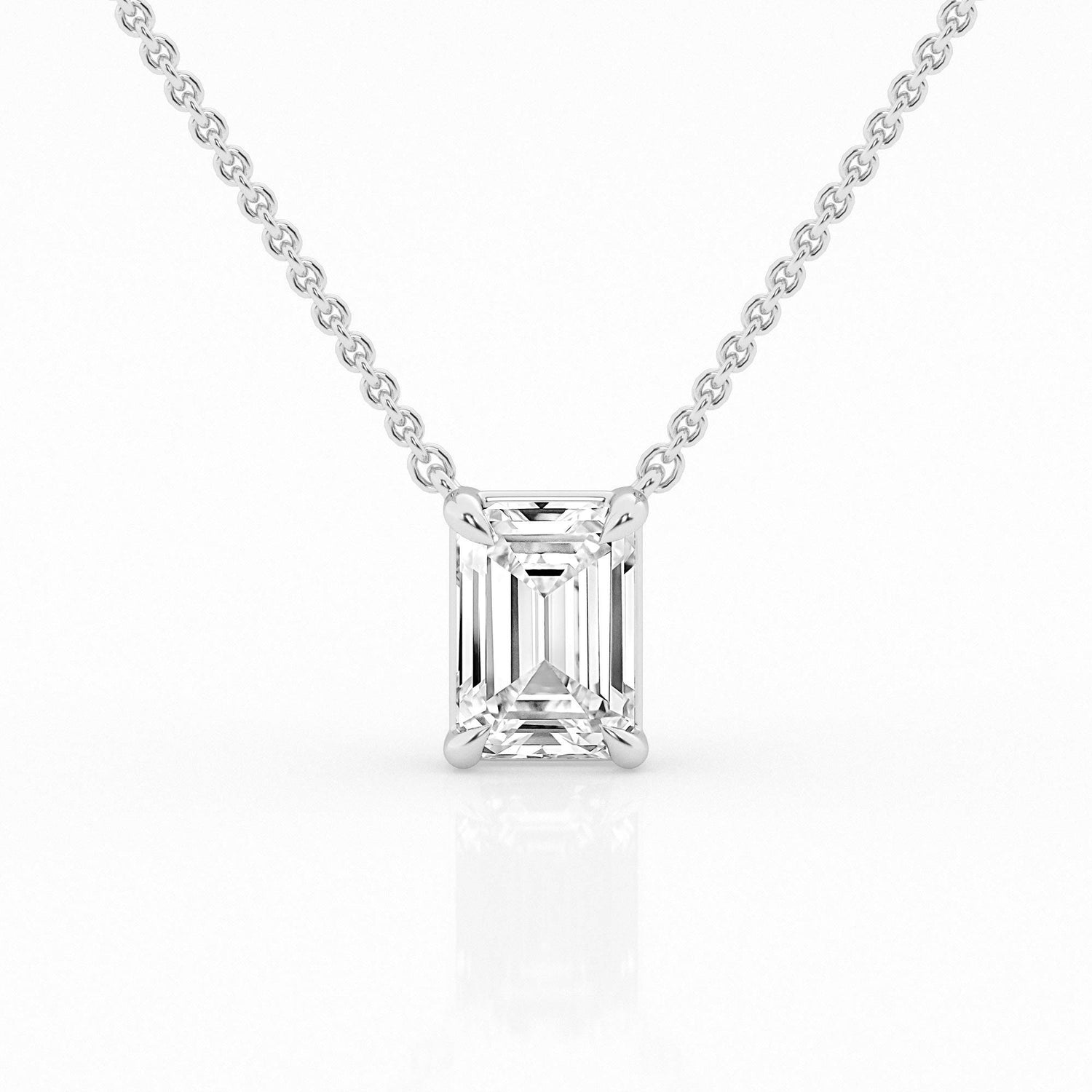 Crafted in 14k white gold with 2.00 ct emerald-cut lab-grown diamond, polished finish, solitaire pendant setting, hypoallergenic, durable.