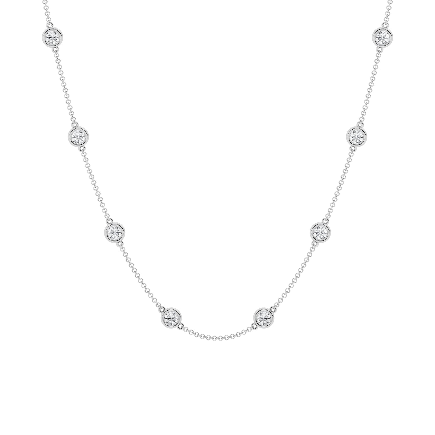 Crafted in 14k white gold with 3.00 cttw round lab-grown diamonds, polished finish, spaced along chain, secure clasp, hypoallergenic, durable.