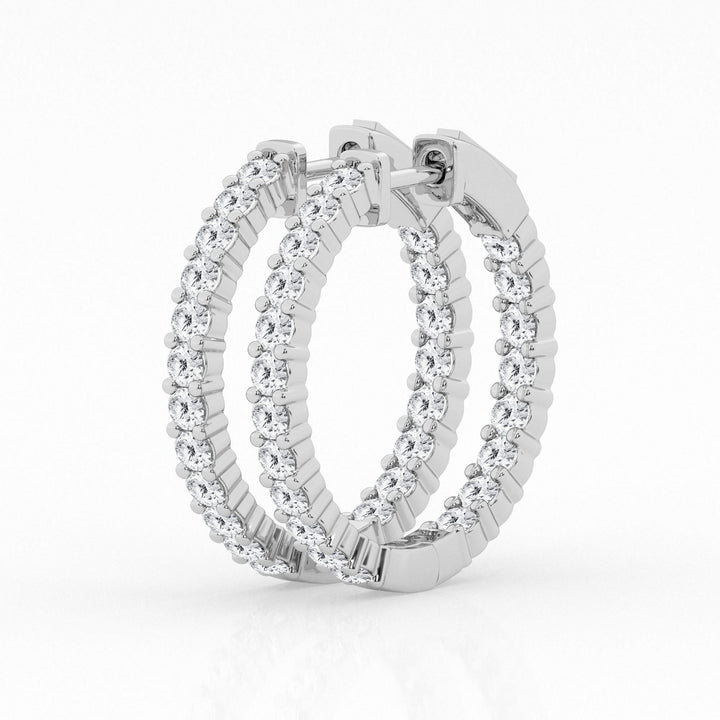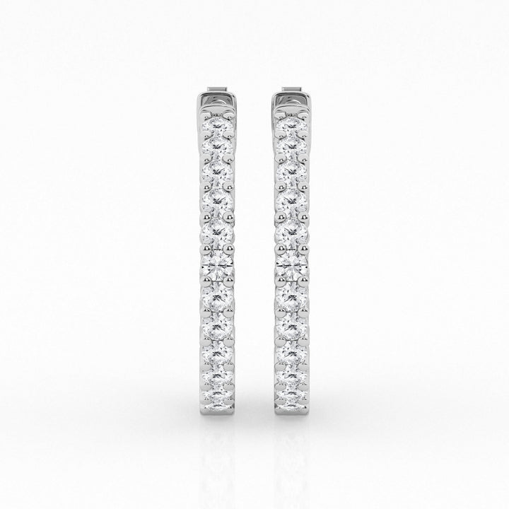Handcrafted in 14k white gold with 2.00 cttw round lab-grown diamonds, polished finish, hoop design, secure closure, hypoallergenic, durable.