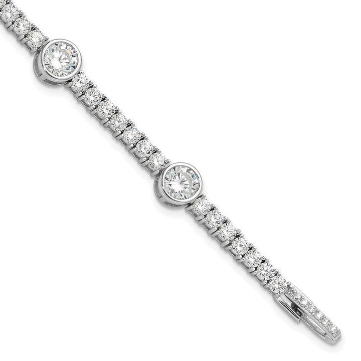 Handcrafted in sterling silver with rhodium plating. Set with round-cut cubic zirconia stones. 7 inches in length with polished finish for durability and shine.