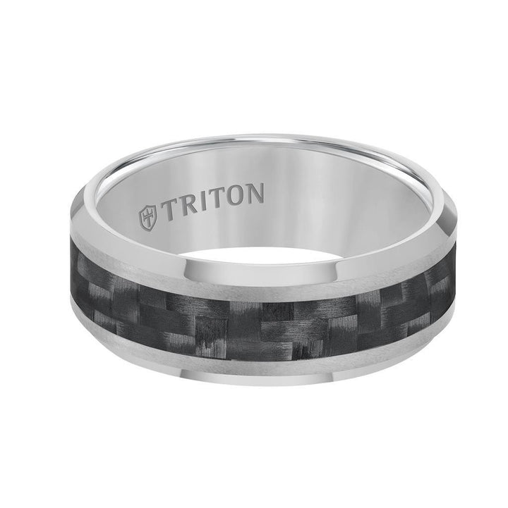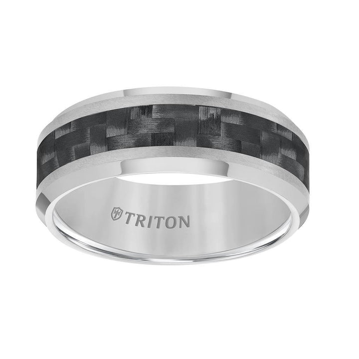 ABEL Black Carbon Fiber Inlaid Tungsten Band with Beveled Edges by Triton Rings - 8 mm