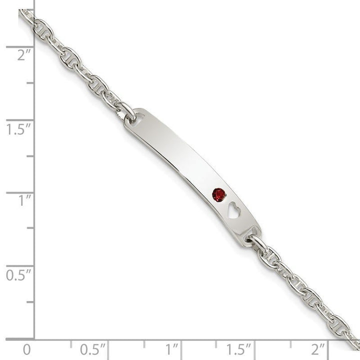 Sterling Silver Polished ID with Red CZ Heart Bracelet