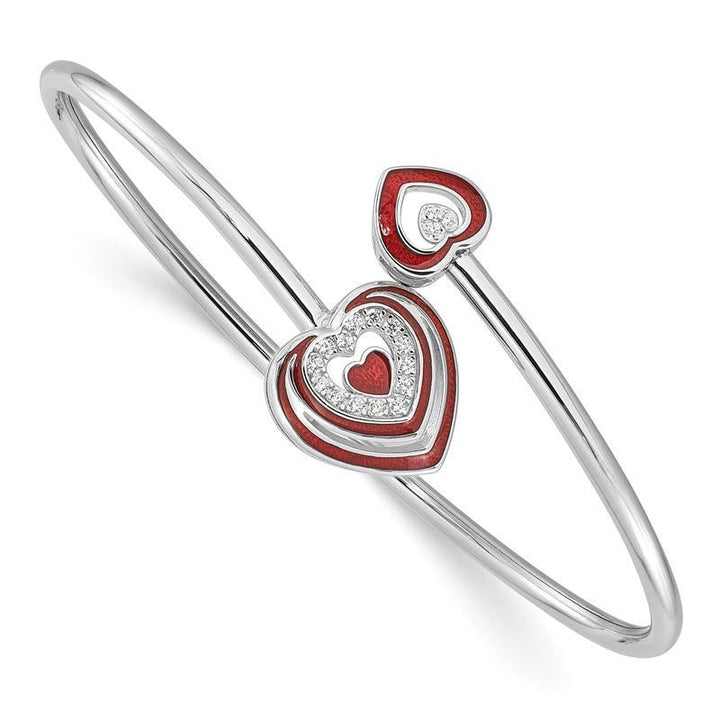Sterling Silver Rh-plated CZ Red Enamel Heart Flexible Cuff Bangle Bracelet