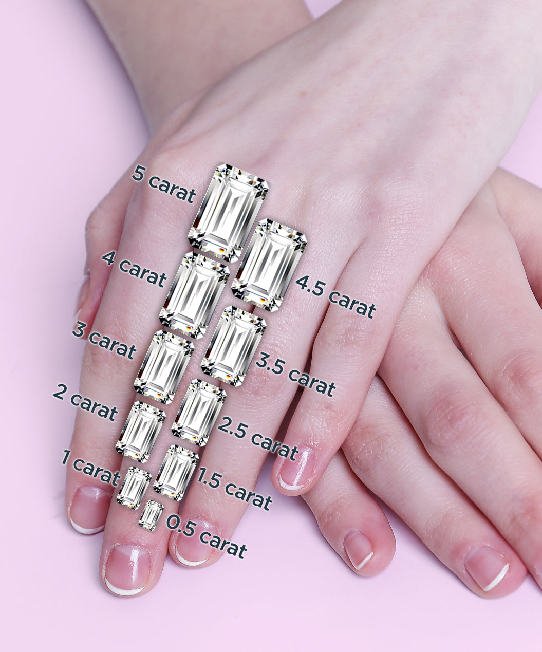 This ring is made of 14K White Gold with a polished finish. It features a 1.50 ct Emerald Lab-Created Diamond center stone and has a total diamond weight of 3.00 cttw. The lab diamonds are D-F color, VS2 or better clarity, and Excellent or better cut.