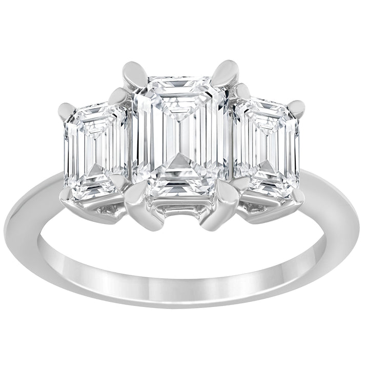 3.00 cttw 3 stone Ring with 1.50 ct Emerald Lab Diamond Center Stone by Mercury Rings