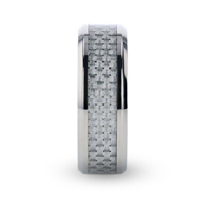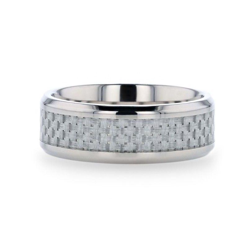 TANTALUS Beveled Edge Titanium Ring with White Carbon Fiber Inlay - 8mm