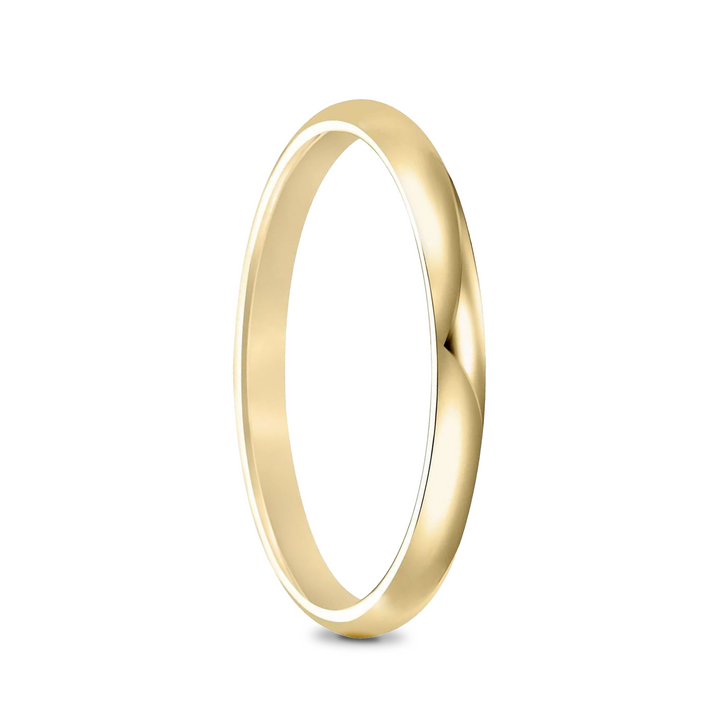 This women's wedding band is crafted from 14k Yellow Gold with a domed profile and a highly polished finish. Available in widths from 2mm to 5mm.