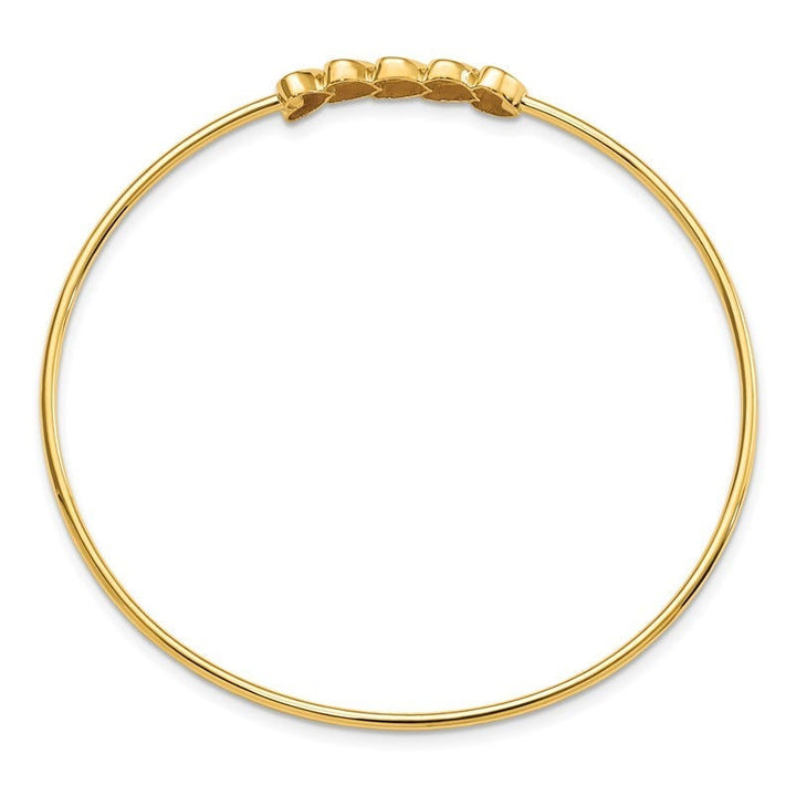 This slip-on bangle is crafted from 14K Gold and White Rhodium plating with a polished finish. It features Diamond-Cut (D/C) hearts.