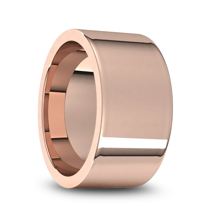 14k Rose Gold Men's Flat Ring with Polished Finish - 5mm - 10mm