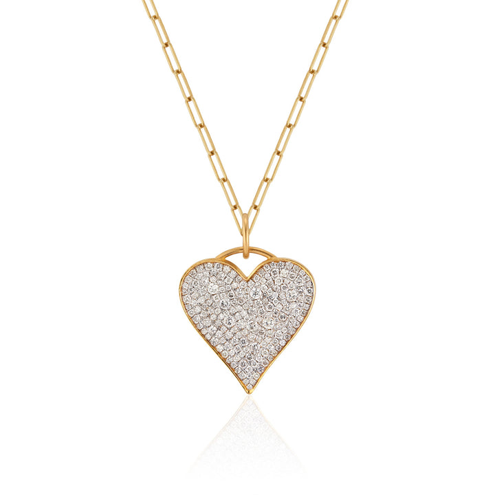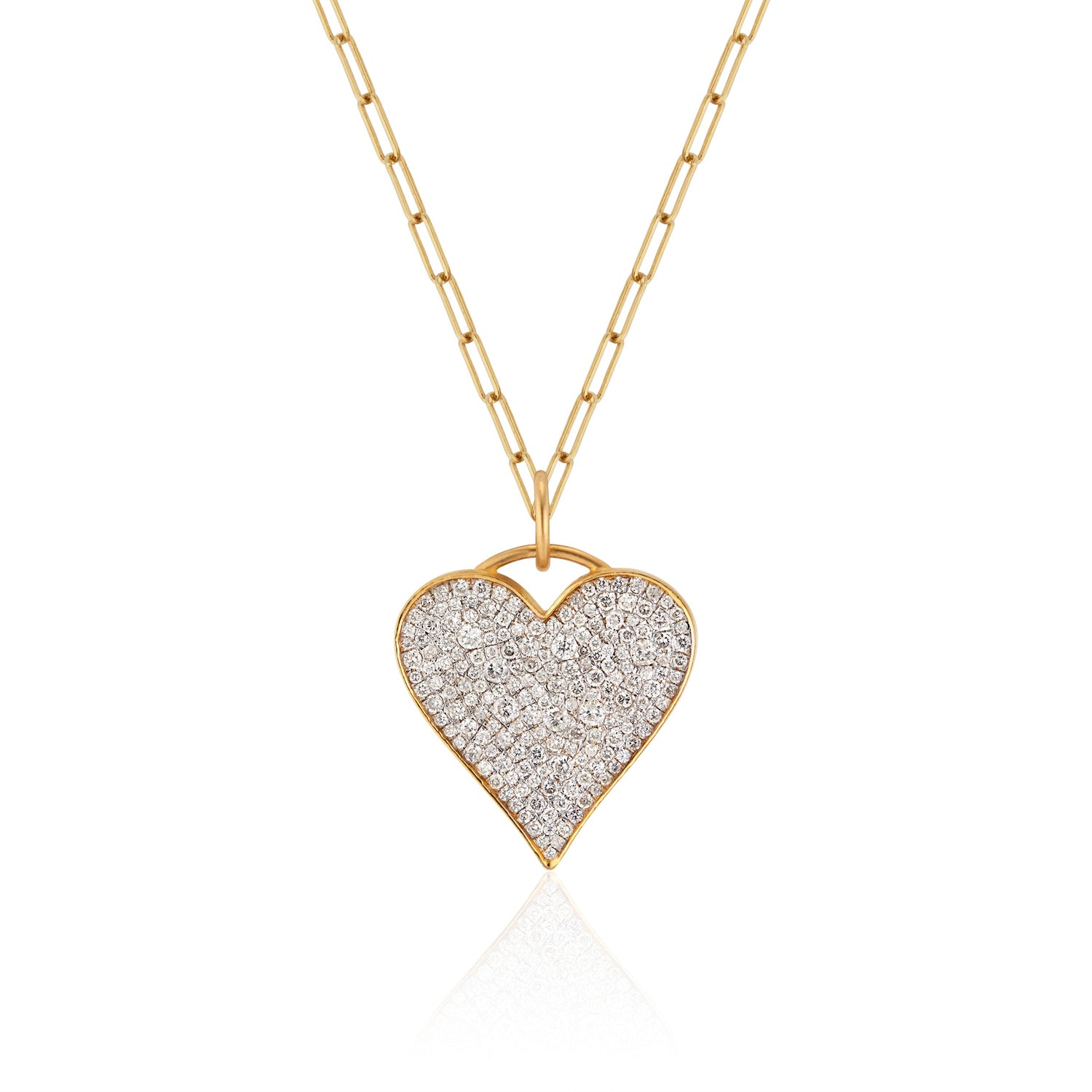 Expertly crafted in 18K gold set with 2.38 carats of brilliant diamonds. Heart measures 30 mm. Pendant only (designed for pairing with your choice of chain).