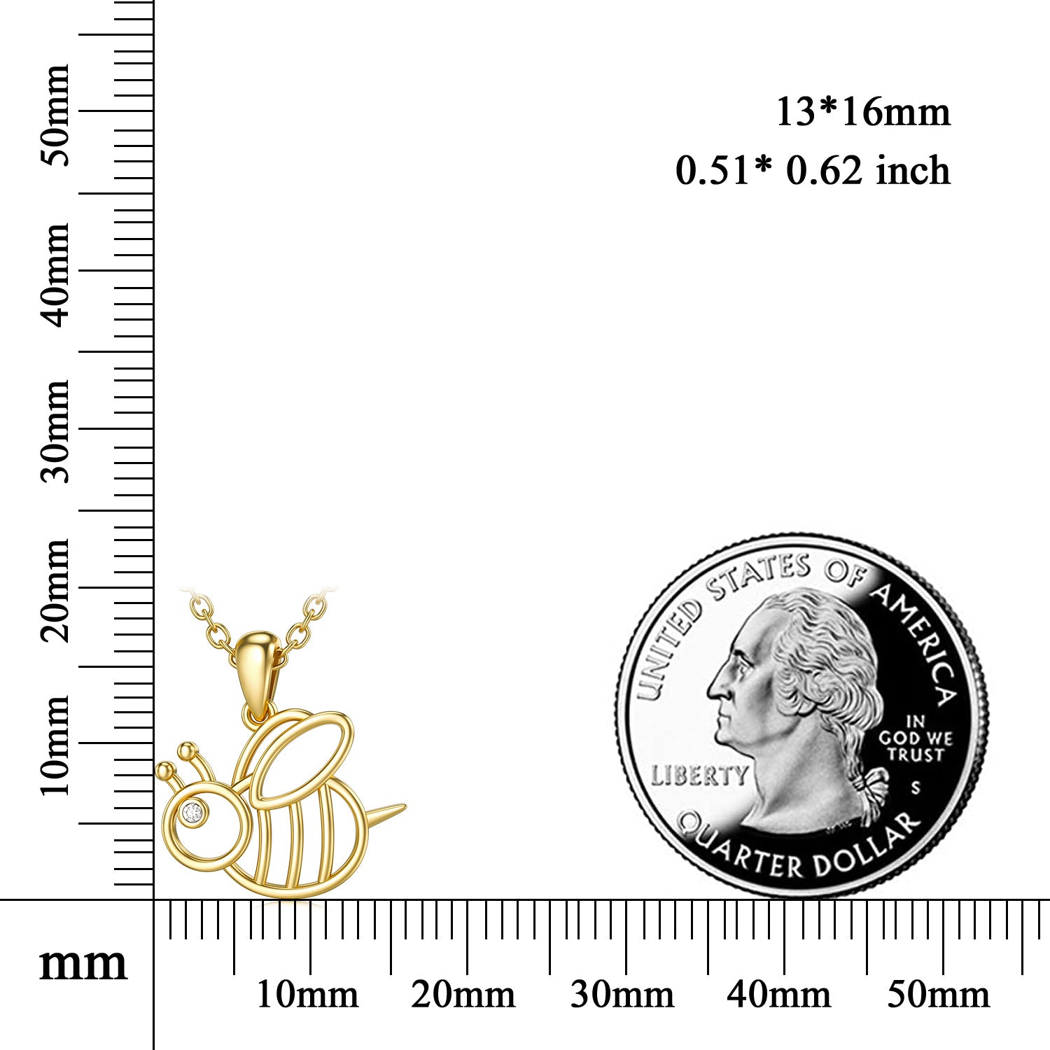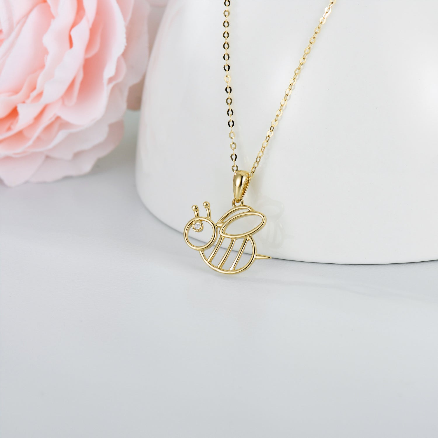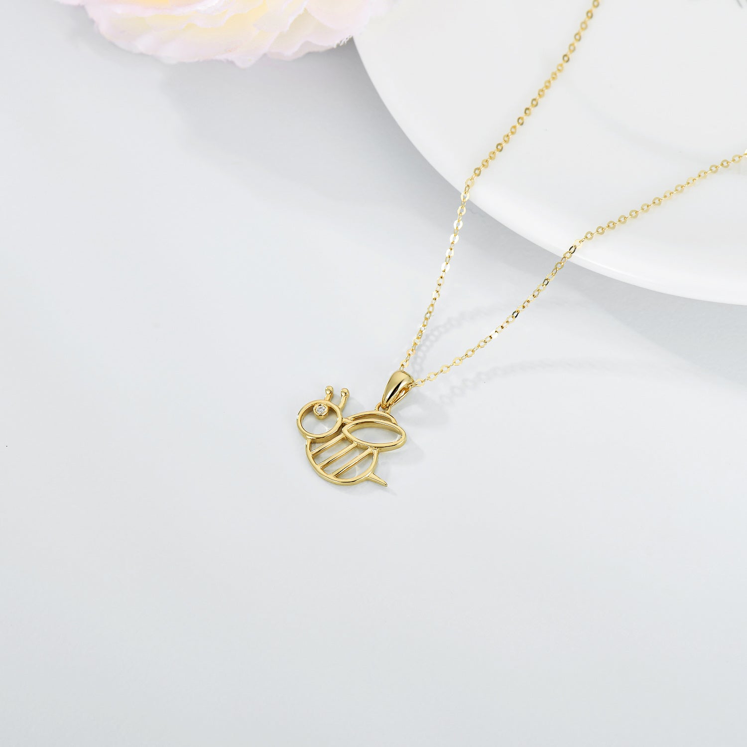 This pendant necklace is crafted from 14-karat solid gold and features an intricate bee design set with a round Moissanite gemstone.