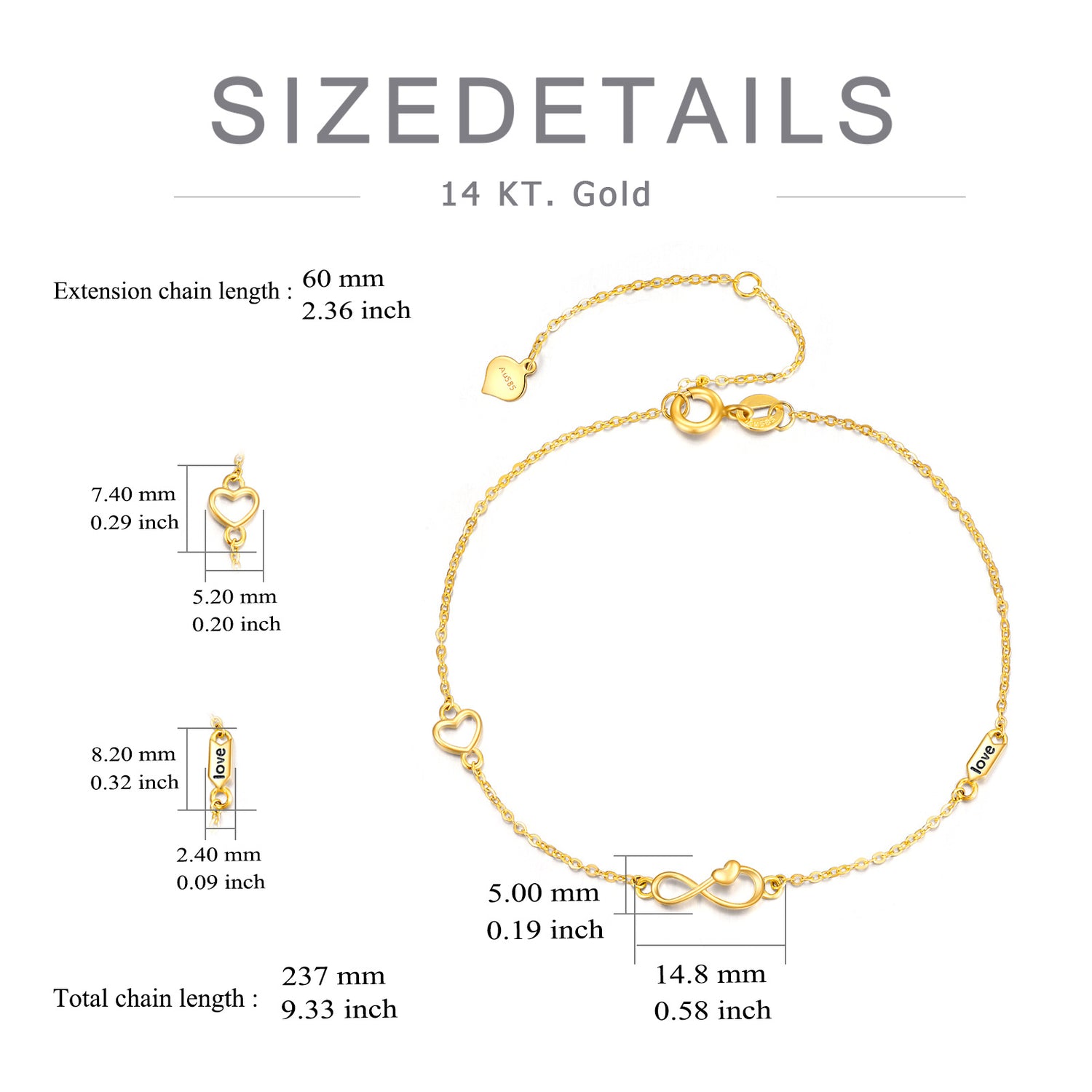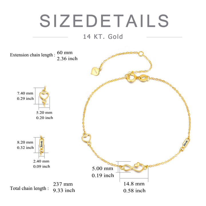 14K Gold Heart & Infinity Symbol Charm Bracelet