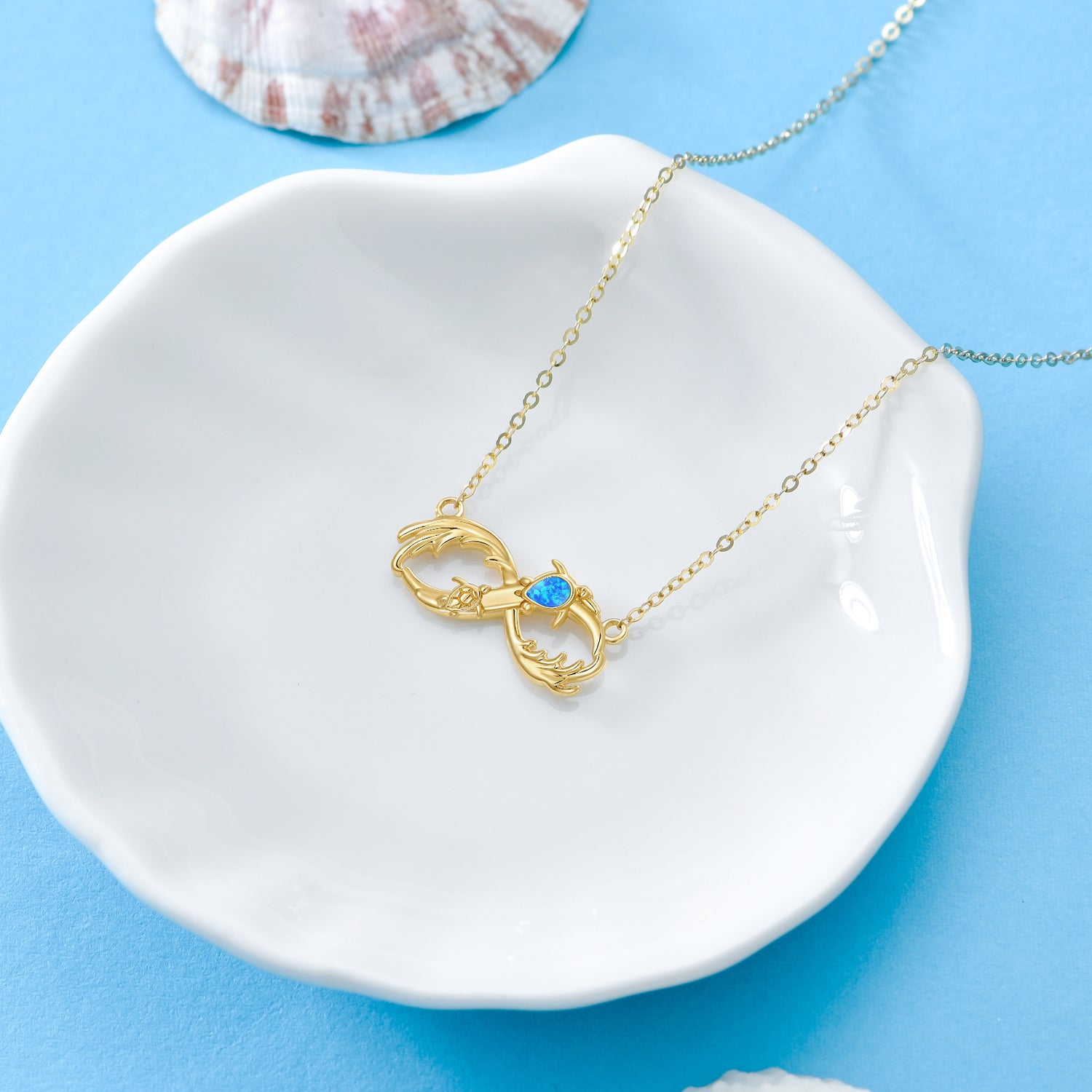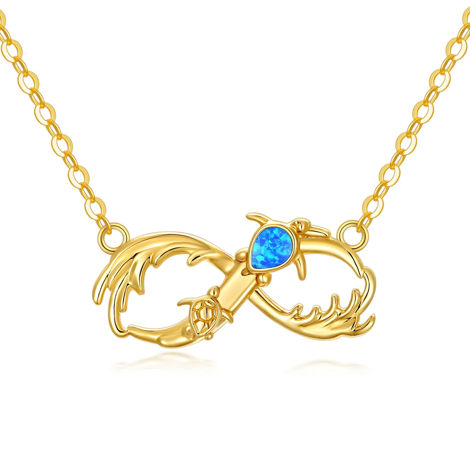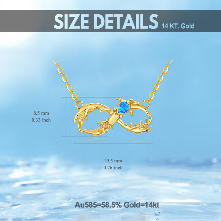 14K Gold Pear Shaped Opal Tortoise & Spray Pendant Necklace