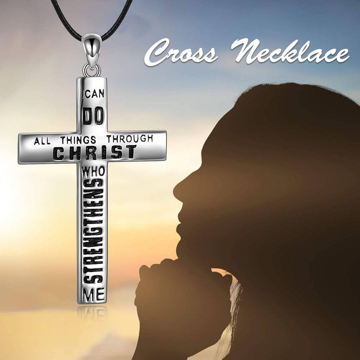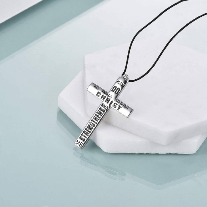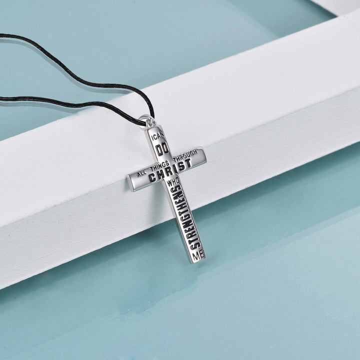 Sterling Silver Cross Pendant Necklace with Engraved Word