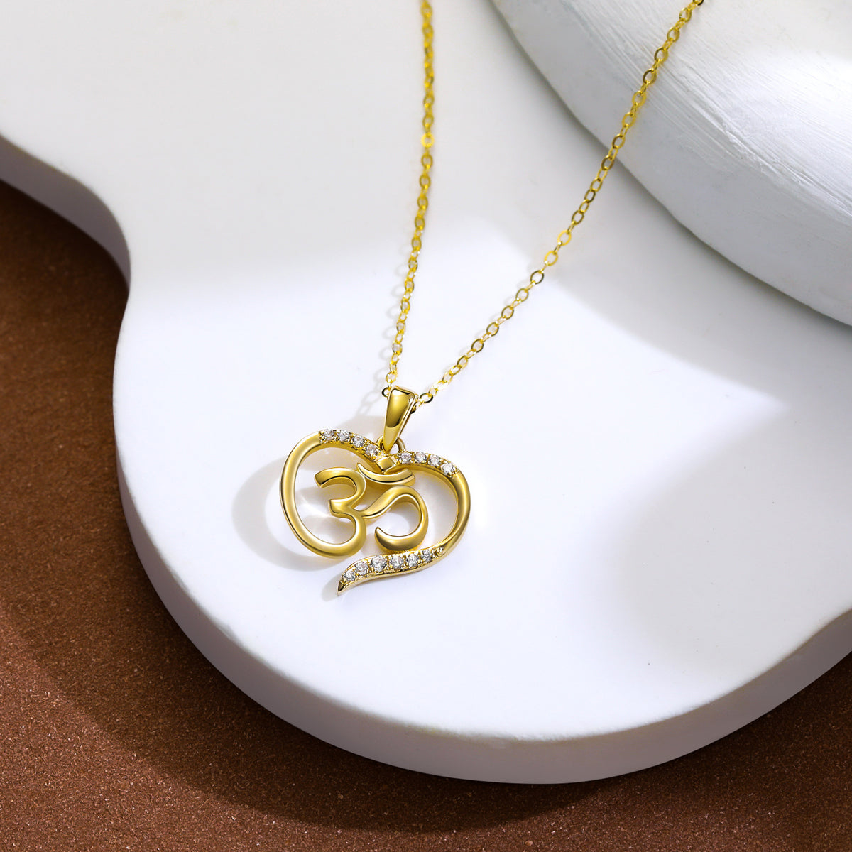 This 14K Gold Cubic Zirconia Heart & Ohm Pendant Necklace by YFN is a beautiful marriage of luxurious design and profound spirituality. The radiant cubic zirconia heart, symbolizing love, is elegantly integrated with the serene Ohm symbol, representing universal harmony and mindfulness. Crafted in 14K gold, the aesthetic is sophisticated, meaningful, and balanced. This necklace is perfect for the woman seeking a piece that is not only dazzling but also serves as a peaceful, symbolic statement for any occasion.