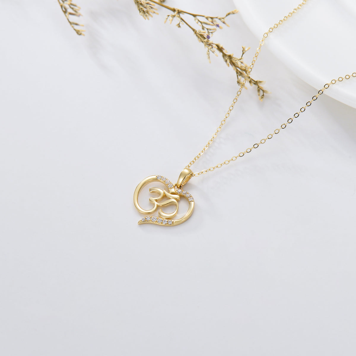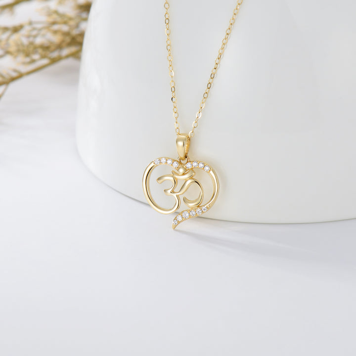 14K Gold Cubic Zirconia Heart & Ohm Pendant Necklace