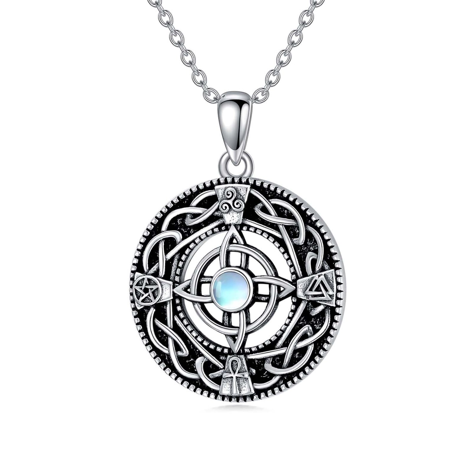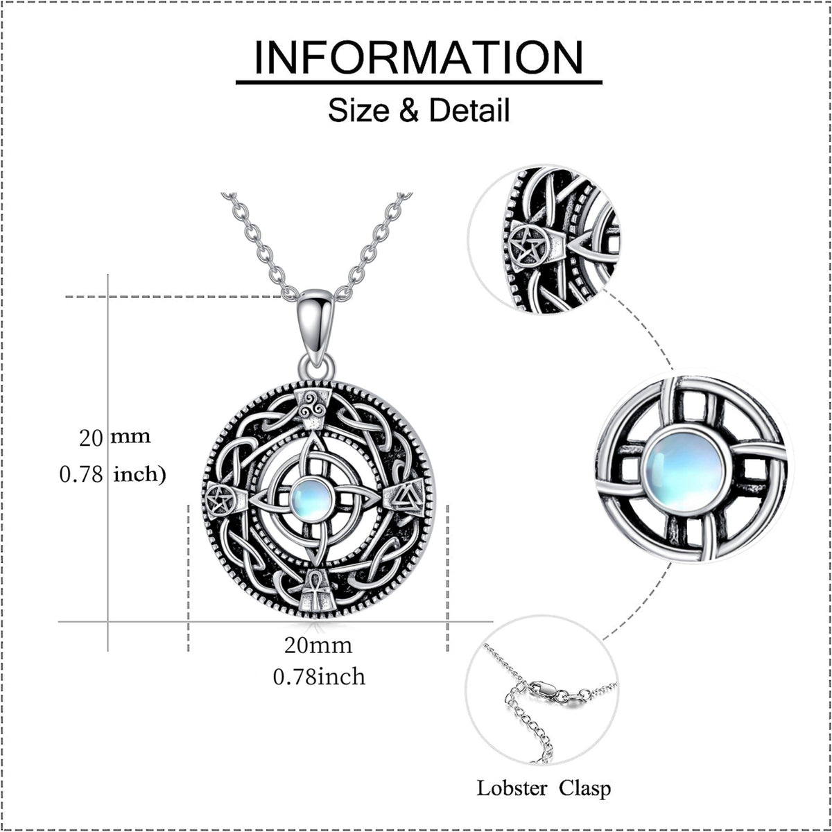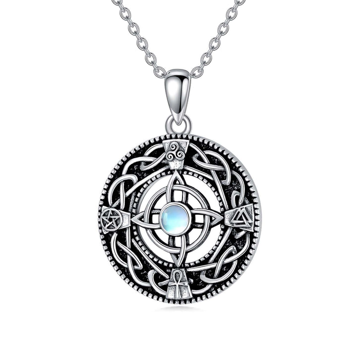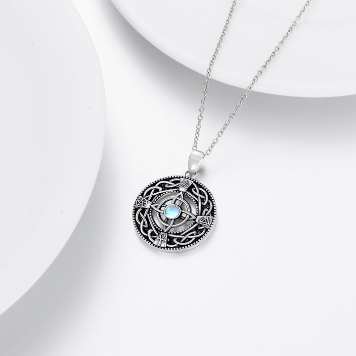 Sterling Silver Circular Shaped Moonstone Triforce Celtic Knot Pendant Necklace