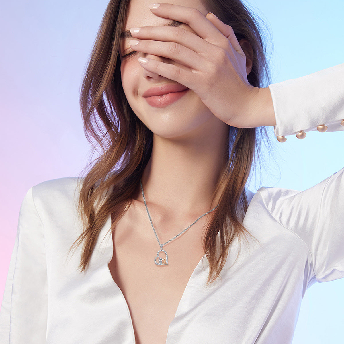 This Sterling Silver Two-tone Circular Shaped Cubic Zirconia Hippo & Heart Pendant Necklace by YFN is a whimsical and sentimental accessory. The circular pendant features a charming hippo nestled within a heart, adorned with sparkling cubic zirconia, all set in a silver and rose gold two-tone finish. Engraved with "Always In My Heart," the piece symbolizes enduring love and affection. The aesthetic is playful yet sophisticated, making it an ideal, heartfelt gift that adds a touch of whimsical charm to any woman's collection.
